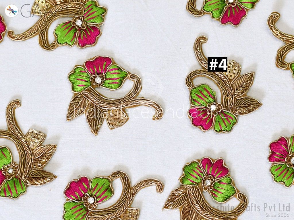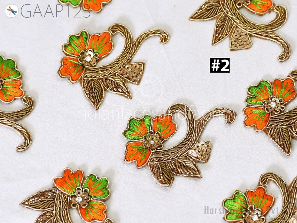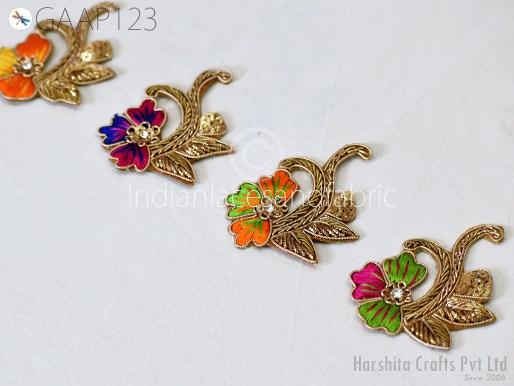 10 Piece Indian Decorative Bullion Applique Patches Handcrafted Embellishments Sewing Crafting Golden Wedding Dresses Scrap booking Home Decor, applique for dress, wedding dress patch, bridal applique, design costumes patch, dresses appliques