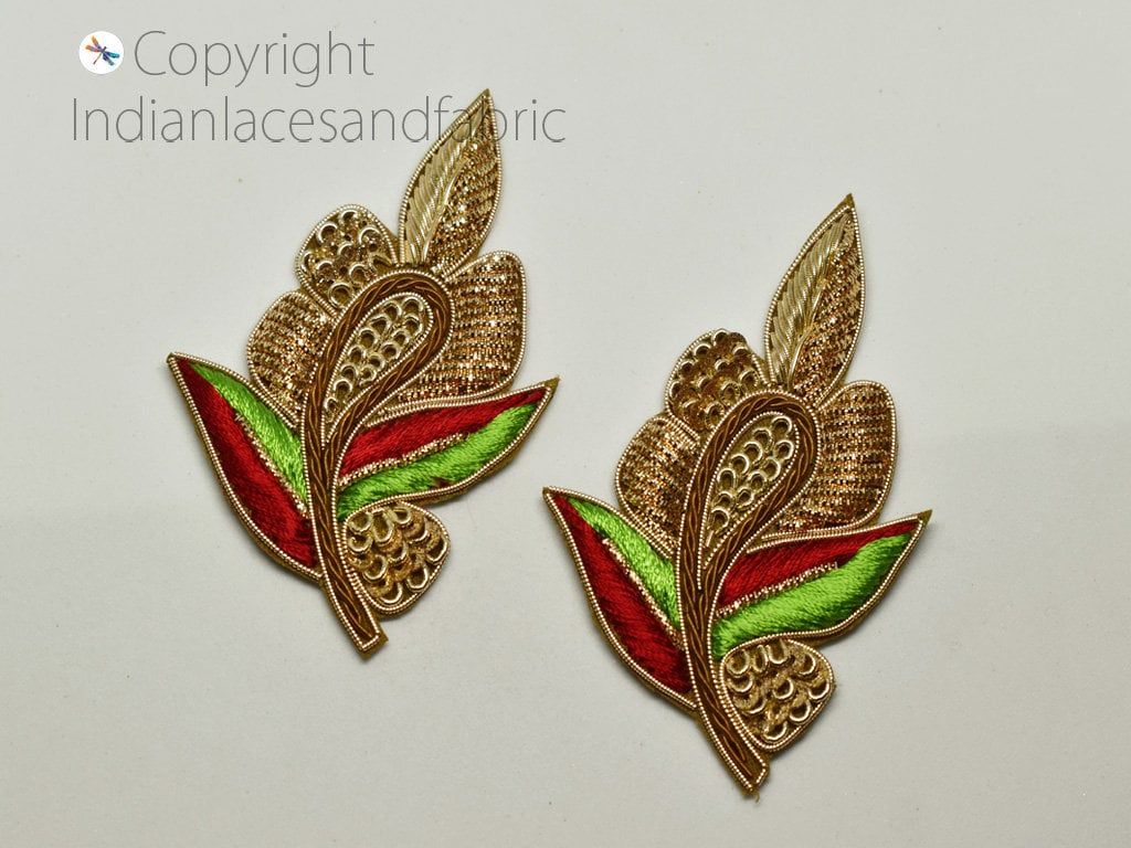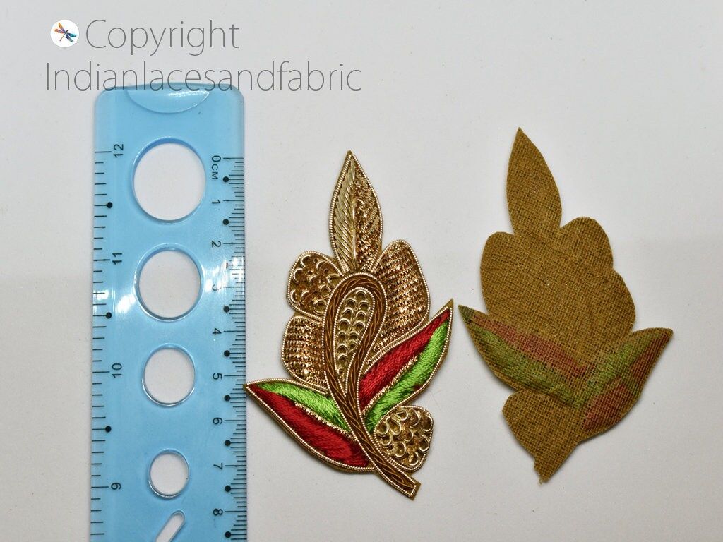 10 Piece Gold Appliques are extremely beautiful applique (sew on applique or you can paste it on fabric) which gives the exclusive look. Each of them is decorated with Zardozi work, Silk Thread work to make it a perfect piece for embellishing a Sewing Accessories, Summer Dress, Handbags, Wall Hanging, Tudor kirtle, pets band, Arts and Crafts etc.