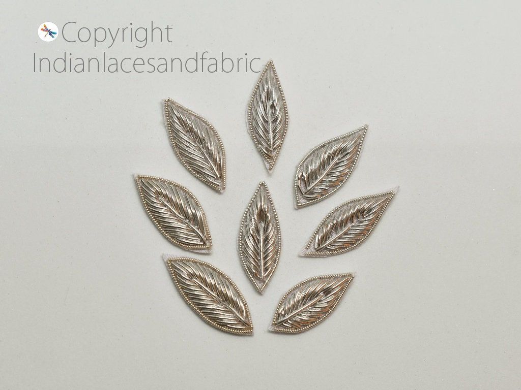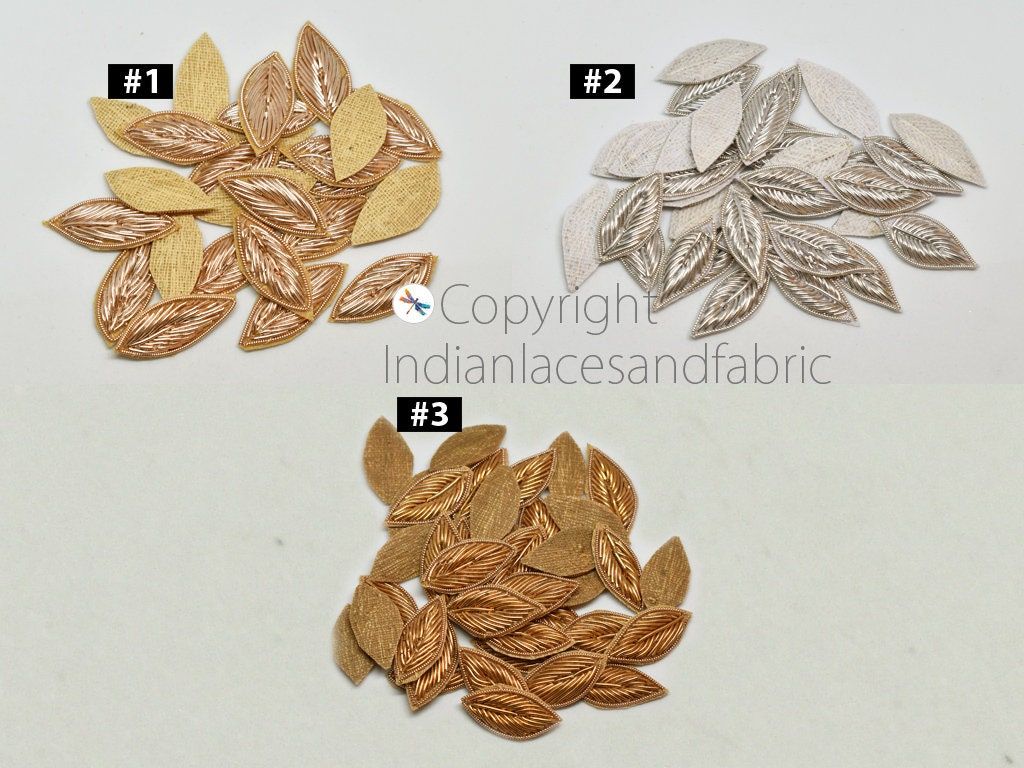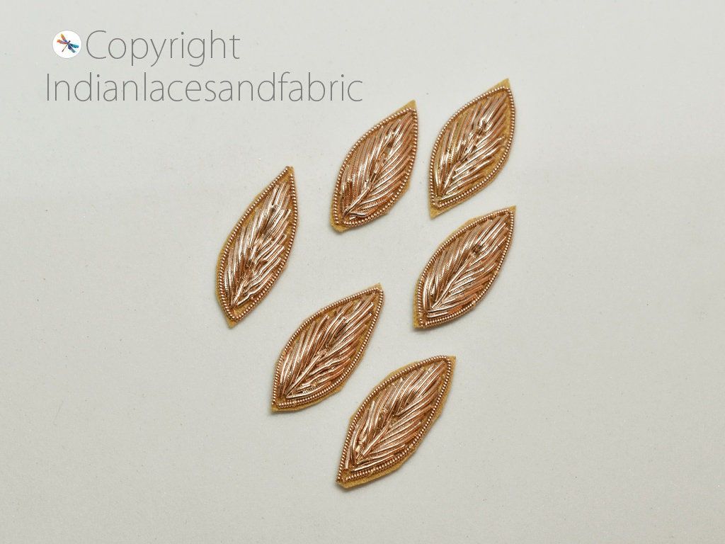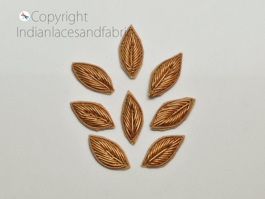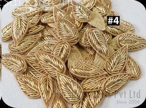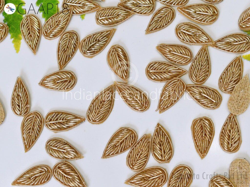 Handmade Appliques and Patches Leaf Shape Gold Zardozi Hand Embroidered Indian Sewing Thread Dresses, skirt, sari Blouse Crafting Supply