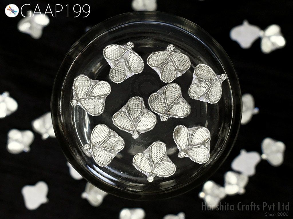Tiny Flower shaped Appliques extremely beautiful sew on applique. Each of them is decorated with rhinestones, Gota Patti work and Zari Thread to make it a perfect piece for embellishing a wedding dress, Wedding Skirt or a sari.