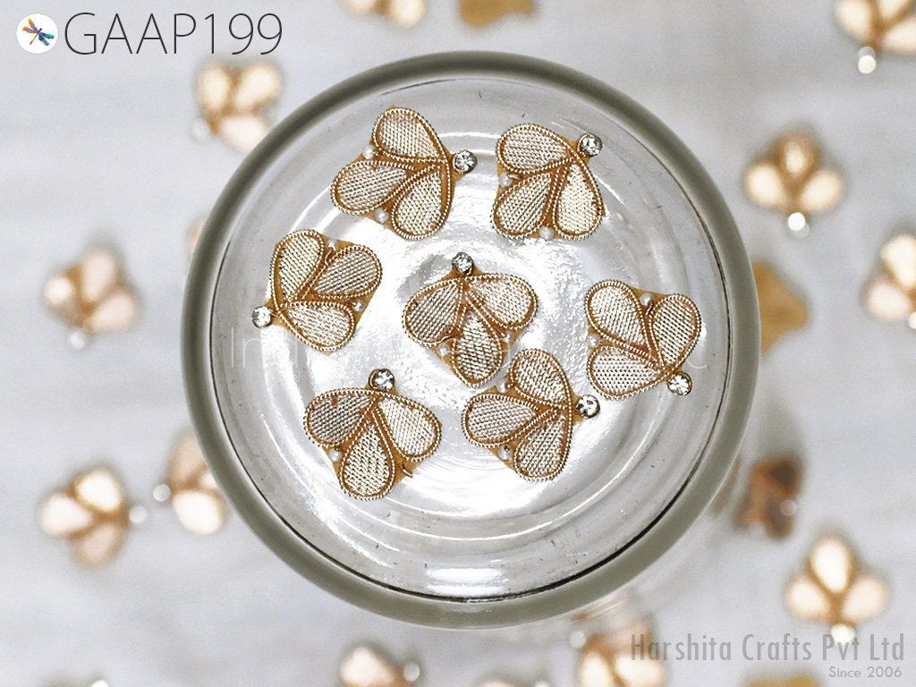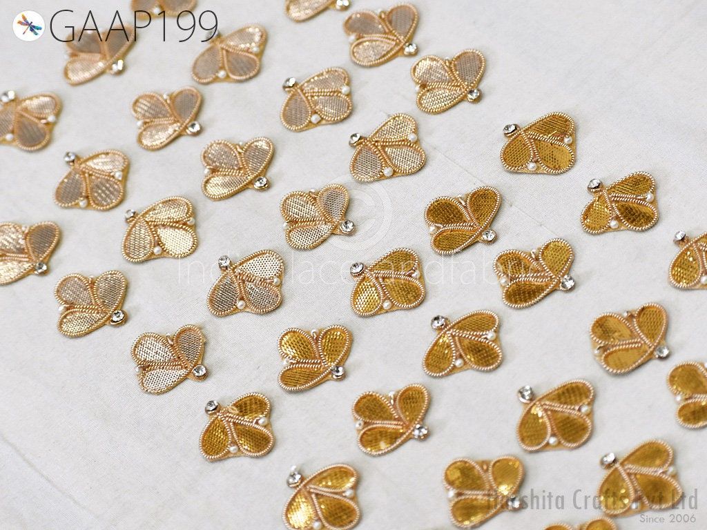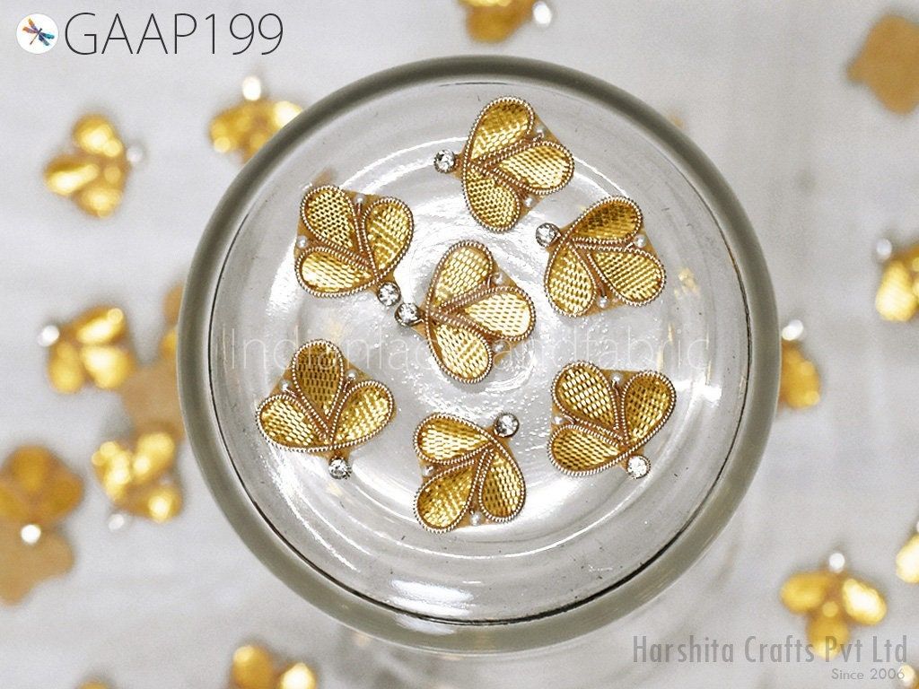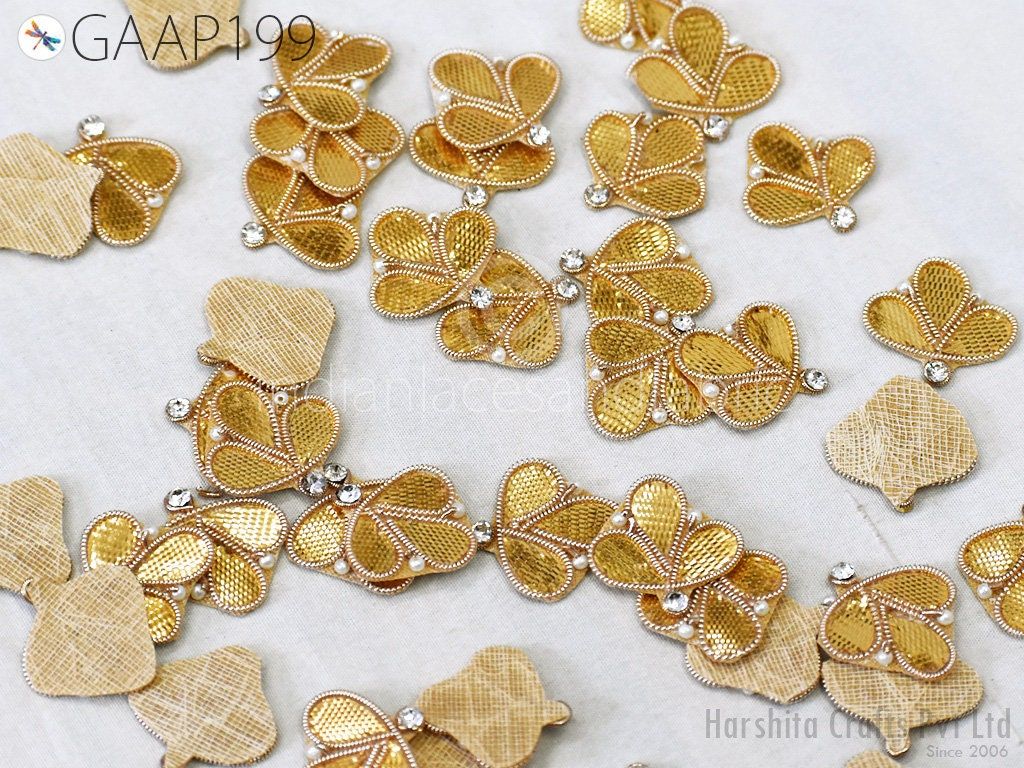 100 Tiny Handmade Applique Gota Patti Zari Flower Motif Crafting Decoration Traditional Applique Floral Pattern Motif Design Bridal Headband Denim Patches, Thread Applique, Flower Shaped Applique, Crafting Patches, Indian Dresses Patches
