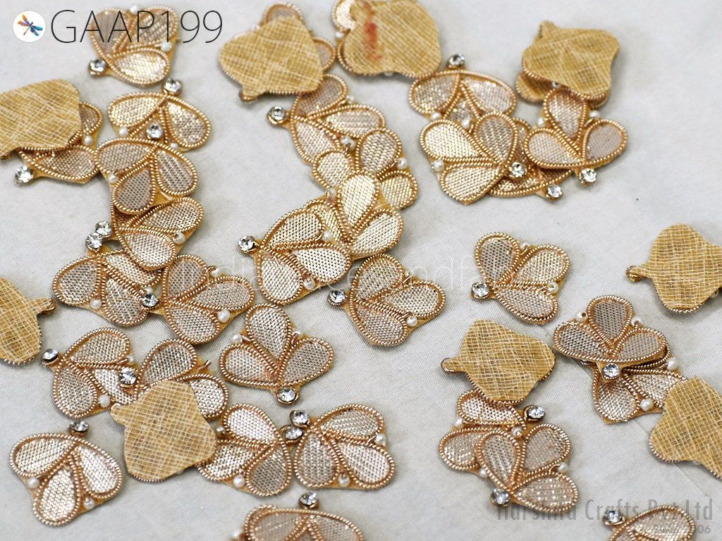 100 Tiny Handmade Gota Patti Zari Flower Appliques: Bridal Headband Embellishments