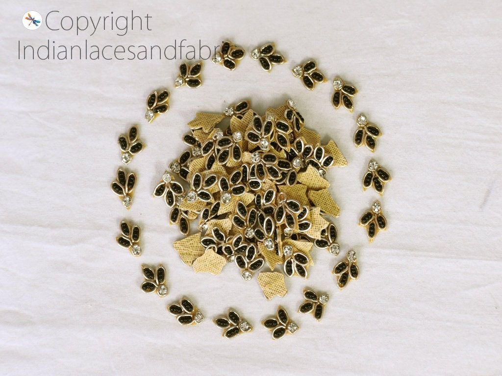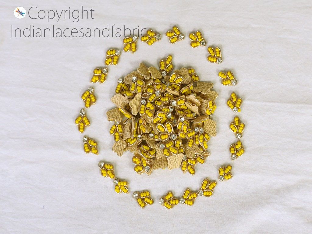 100 Tiny Indian Appliques: Golden Beaded Patches, DIY Crafting