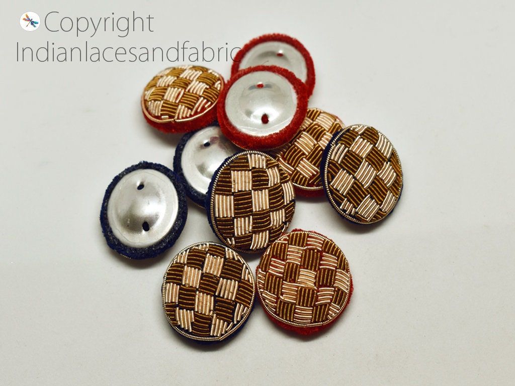 12 Pieces Decorative Zardozi Handcrafted Button Embellishment Indian Embroidered Fancy Hand Embroidery Fabric Cloth Covered Crafting Sewing, Wedding Dresses button, Button For Dresses, Expensive Button, Decorated suit button, Kurti button, Decorative dress button, Festive wear button