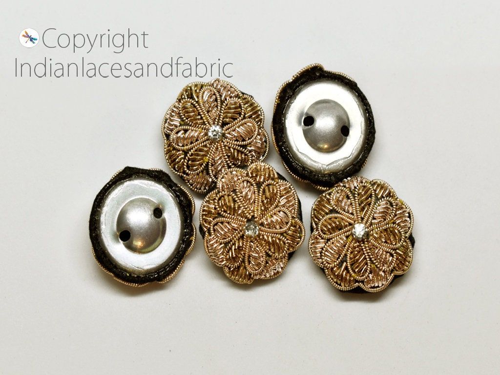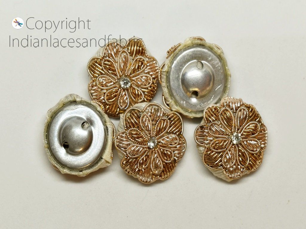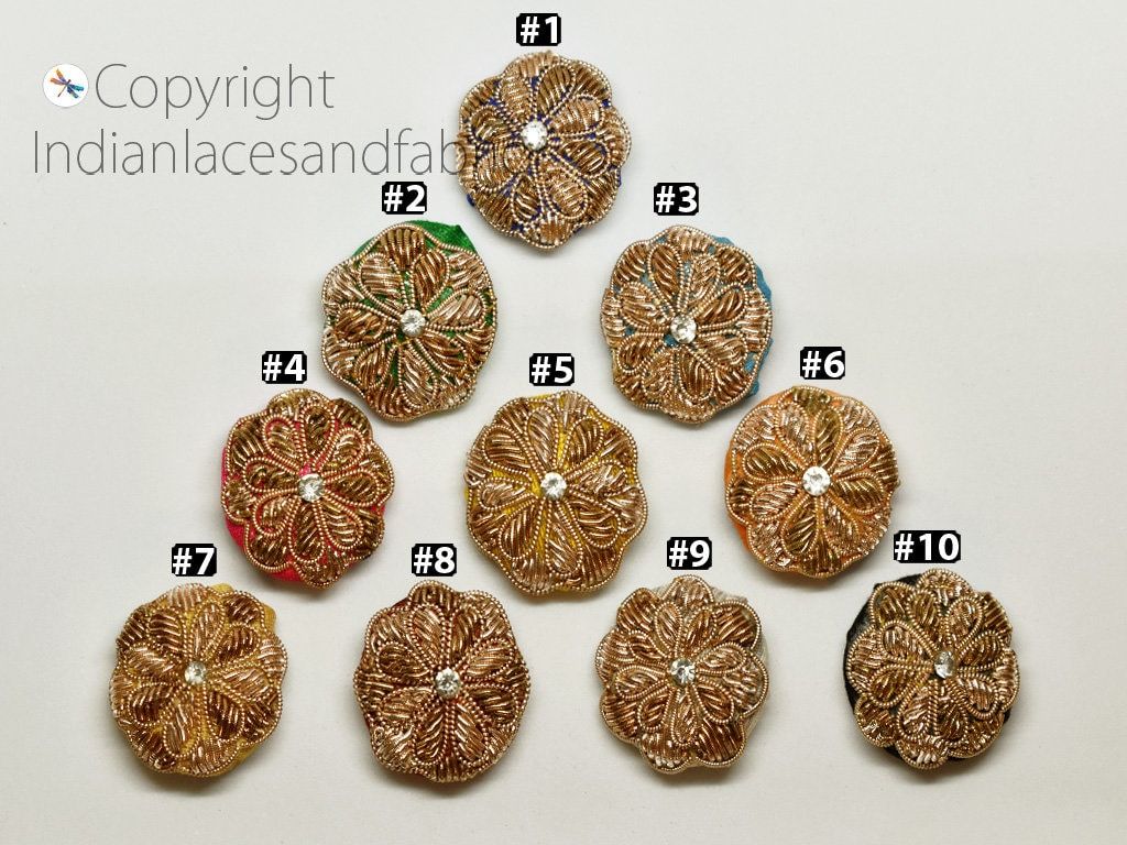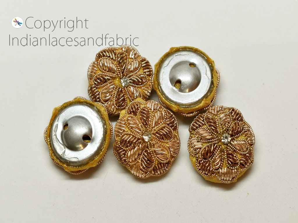 12 Zardozi Handcrafted Fabric Buttons: Indian Embroidered Embellishments