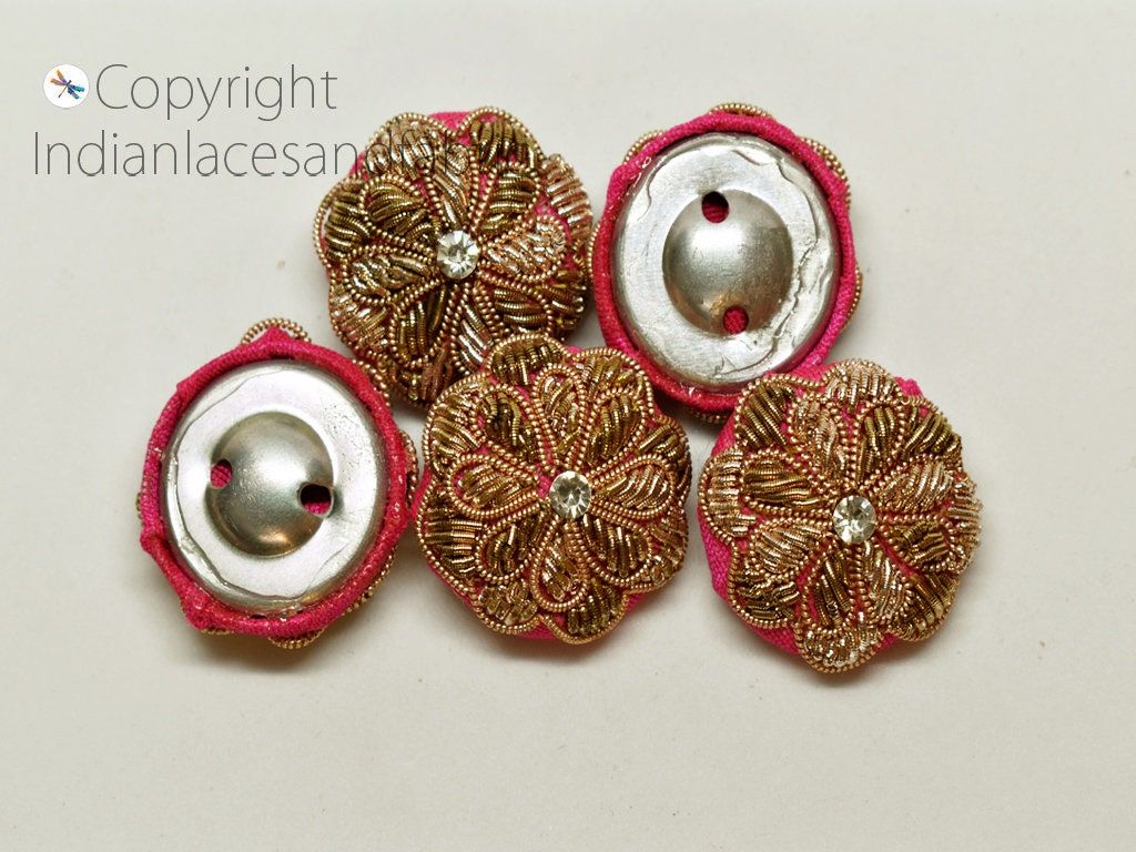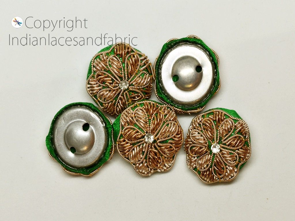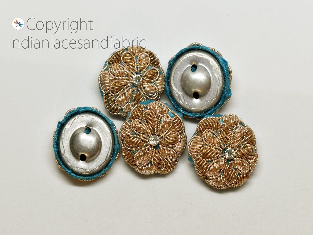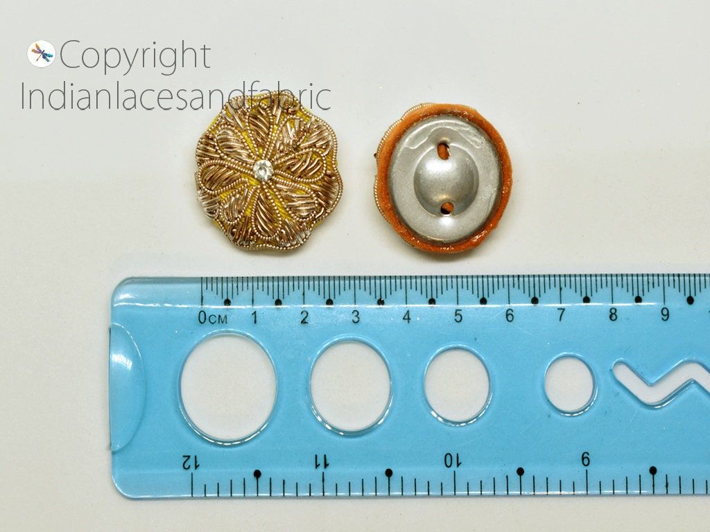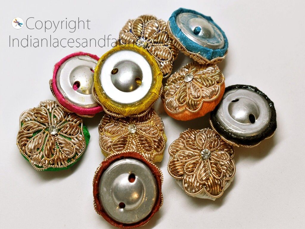 12 Pieces Decorative Zardozi Handcrafted Button Embellishment Indian Embroidered Fancy Hand Embroidery Fabric Cloth Covered Crafting Sewing, Crafting buttons, Sewing buttons, pillow cover buttons, Baby buttons, Children buttons, Big button