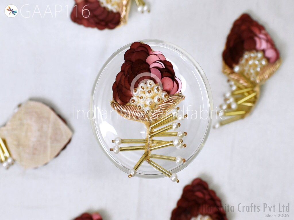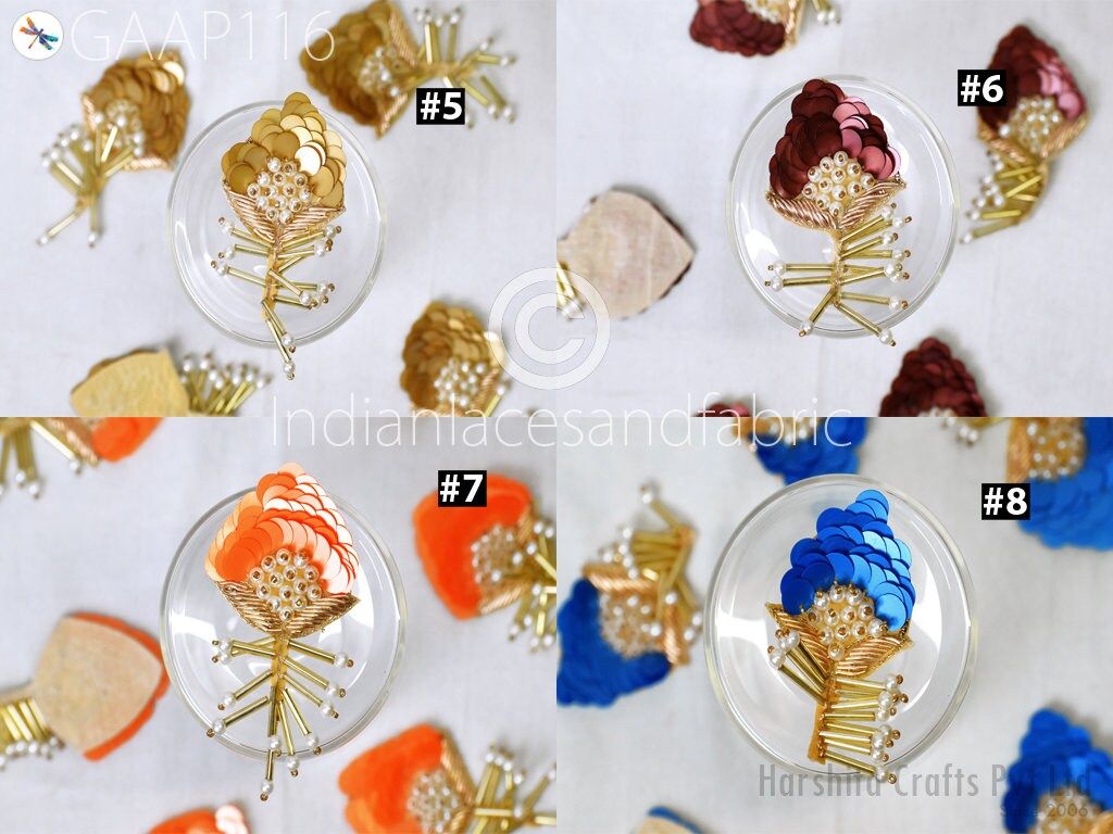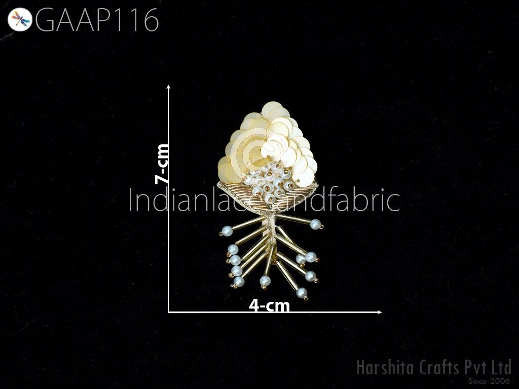 15 Pieces Floral Design Appliques in Beige and Gold Color are extremely beautiful applique (sew on applique or you can paste it with fabric) in Embroidery which gives the exclusive look. Each of them is decorated with Silk Thread work to make it a perfect piece for embellishing a wedding dress, Wedding Skirt or a sari.