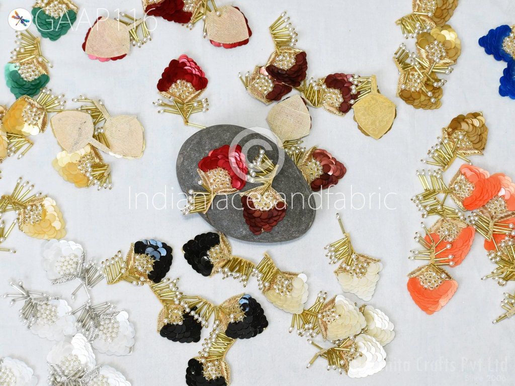 15 Pc Handmade Floral Appliques: Indian Embroidered Patches, DIY Crafting