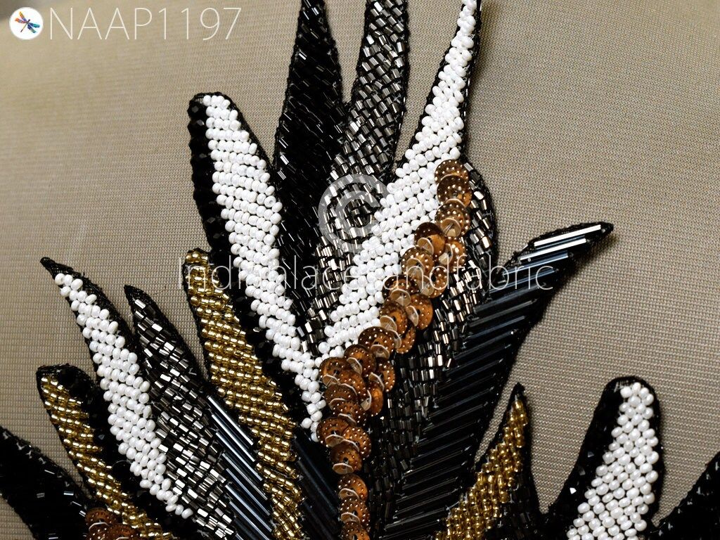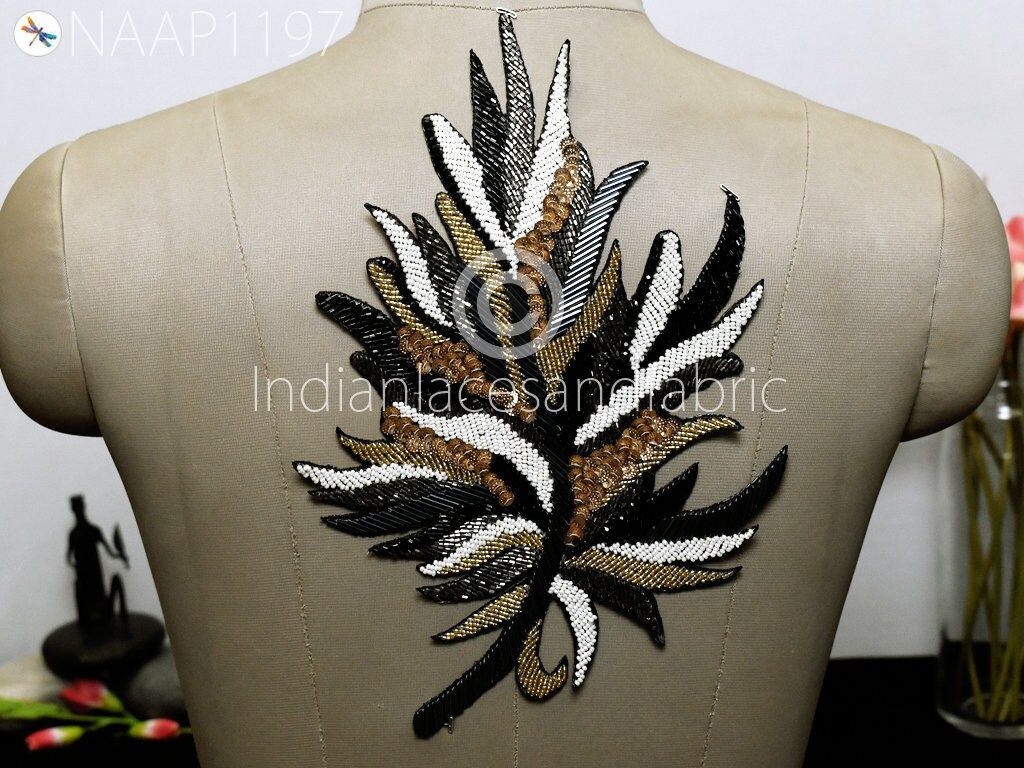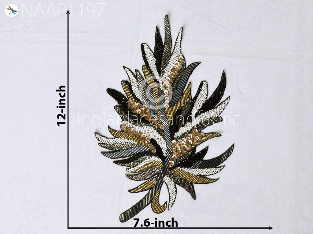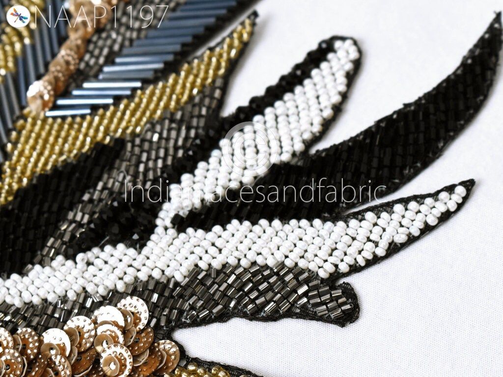 Beaded Patches Appliques Embroidery Sew on Patch Handcrafted for Wedding Dress Costumes Indian Decorative Denim Crafting Sewing Cushions, Decorative Applique, Golden Appliques, Headband Applique, applique design, Handcrafted Appliques, Scrap-booking Appliques.