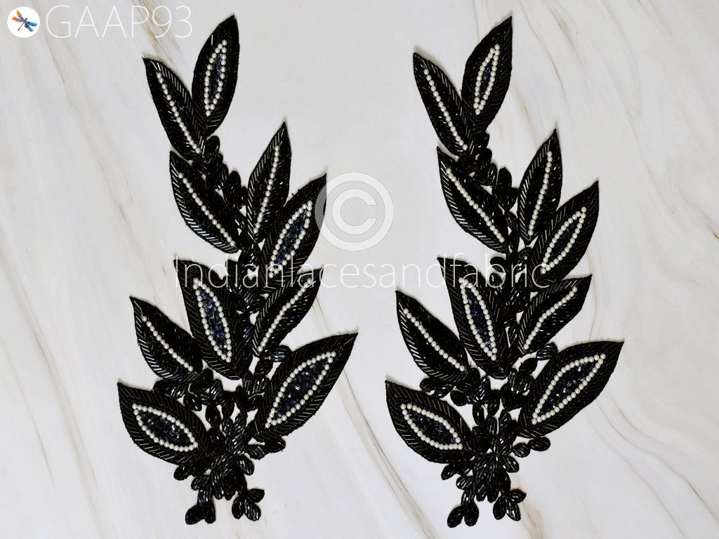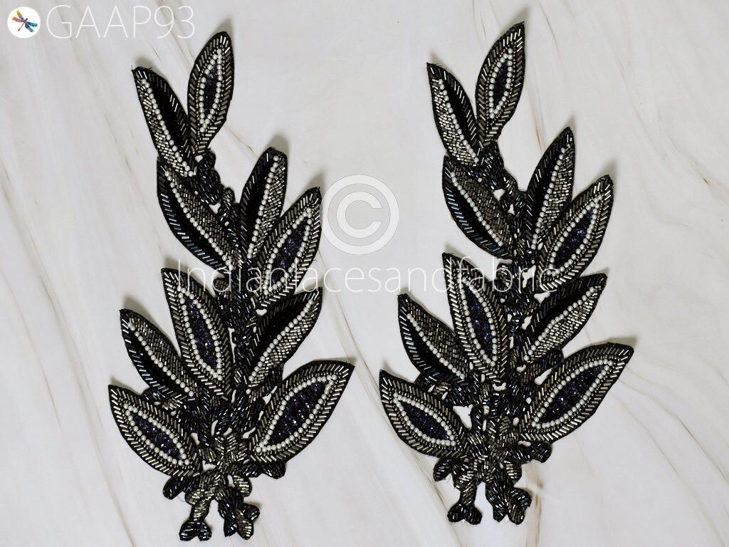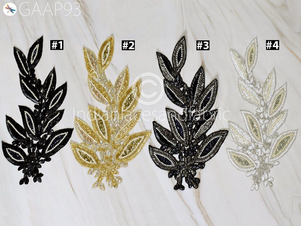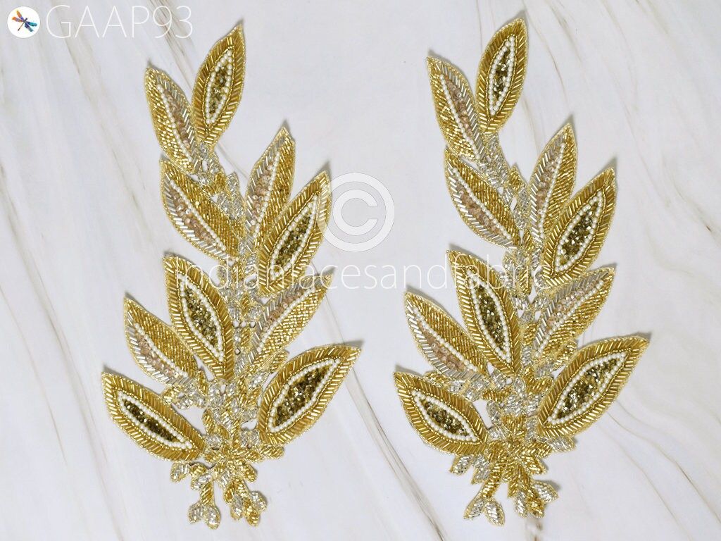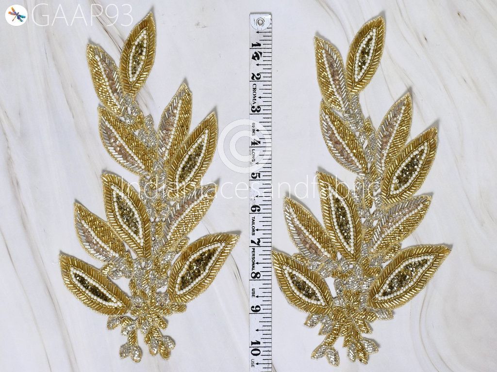 2 Pc Beaded Applique 10 Inch Gold Patches | Handmade Embroidered Leaf Thread Embellished Women Dress Sewing Indian DIY Craft Home Wall Decor, Indian Patches Appliques, Christmas applique, Applique for dress, Headband Applique, applique designs, Handcrafted Appliques, Scrap booking Appliques
