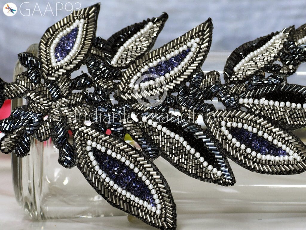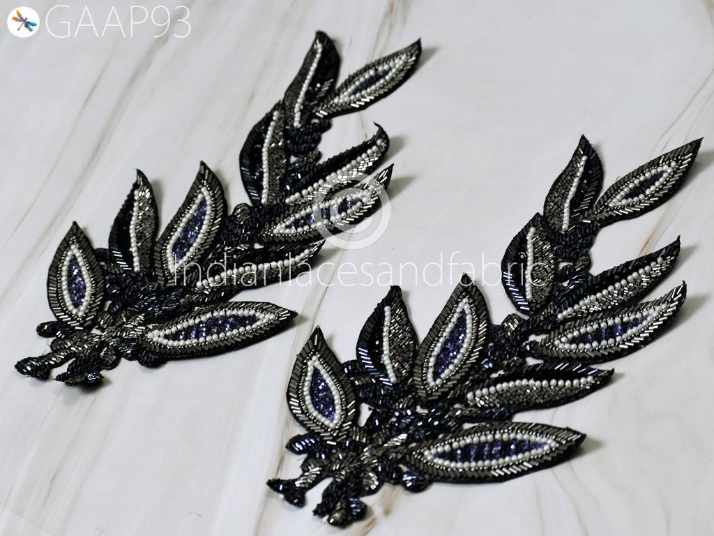 Leaf Design Appliques Patches are extremely beautiful applique (sew on applique or you can paste it with fabric) in Embroidery which gives the exclusive look. Each of them is decorated with Metallic Thread with Bead work to make it a perfect piece for embellishing a wedding dress, Wedding Skirt or a sari.