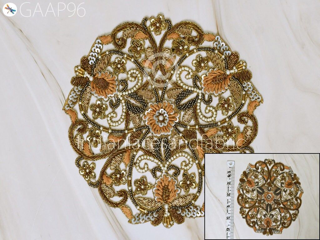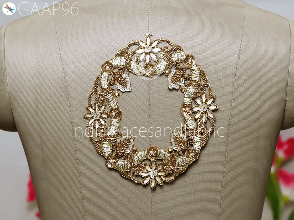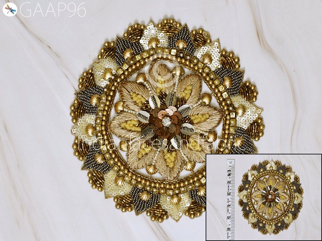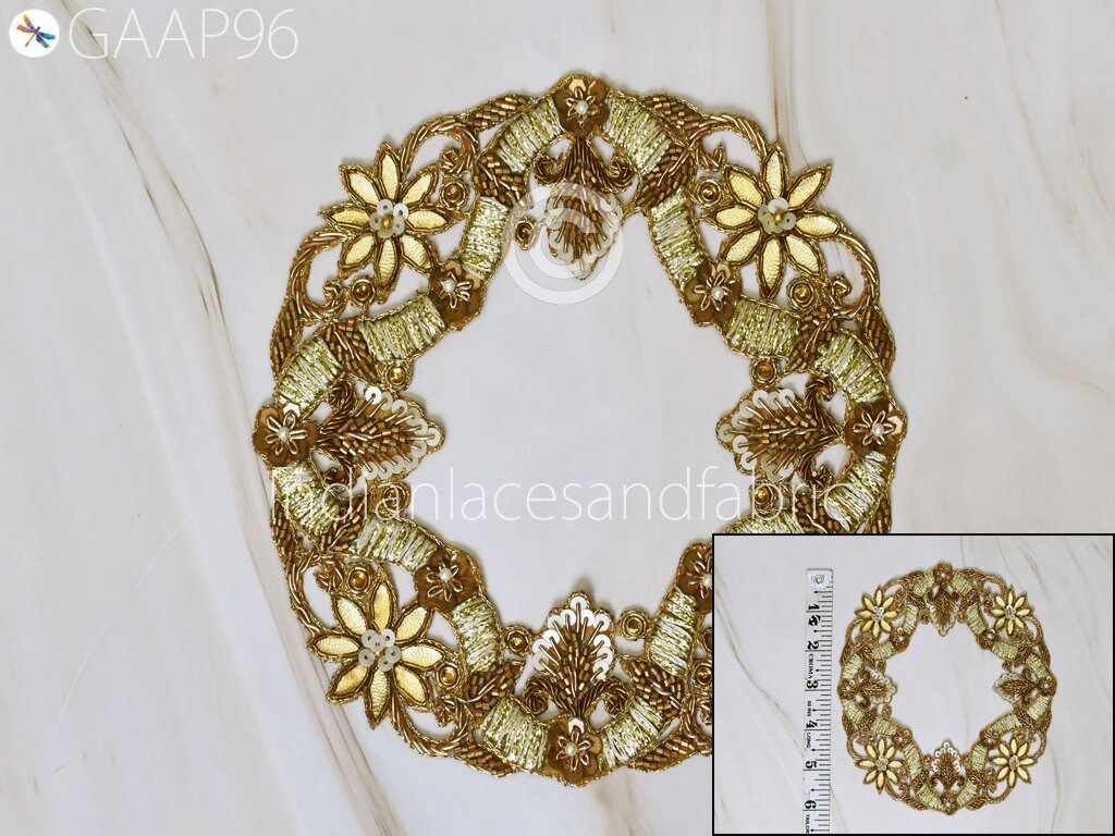 2 Pc Mandala Gold Indian Patches Appliques Dresses Handmade Thread Embroidered Applique Decorative Sewing Crafting Sewing Clothing Accessories, Indian Patches Appliques, Christmas applique, Applique for dress, Headband Applique, applique designs, Handcrafted Appliques