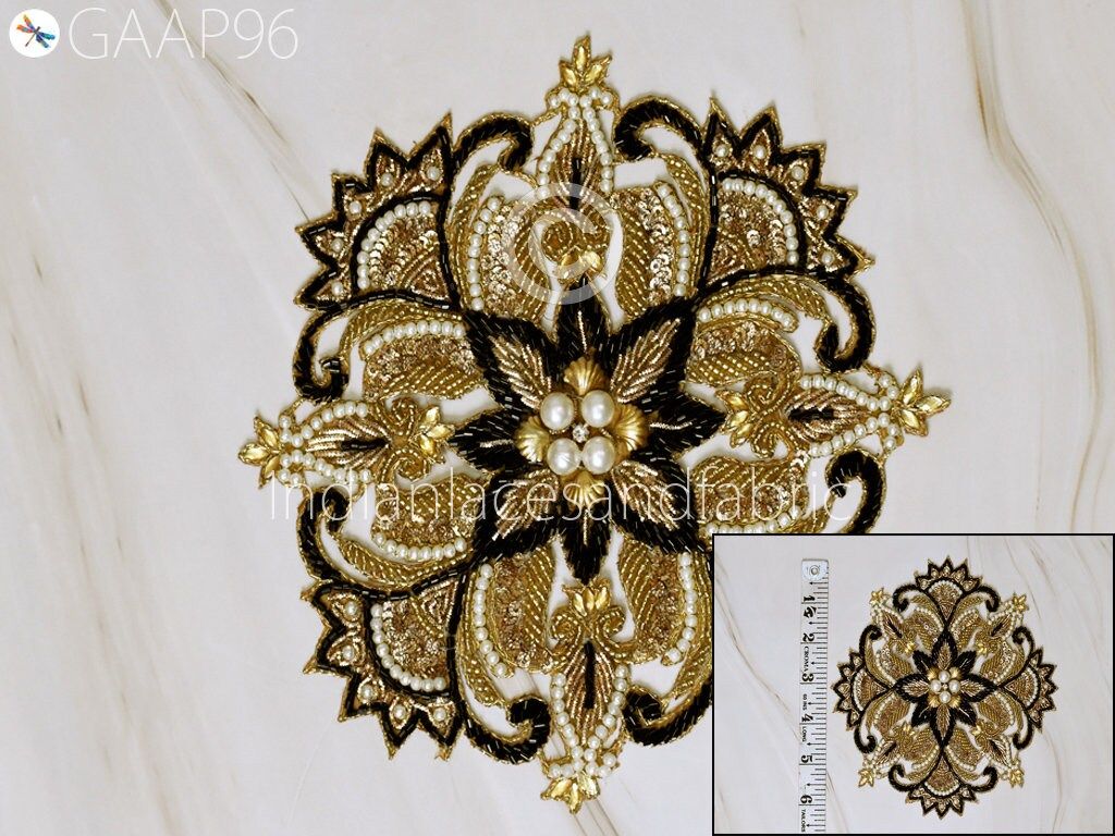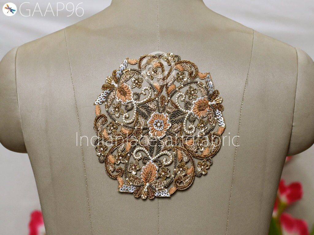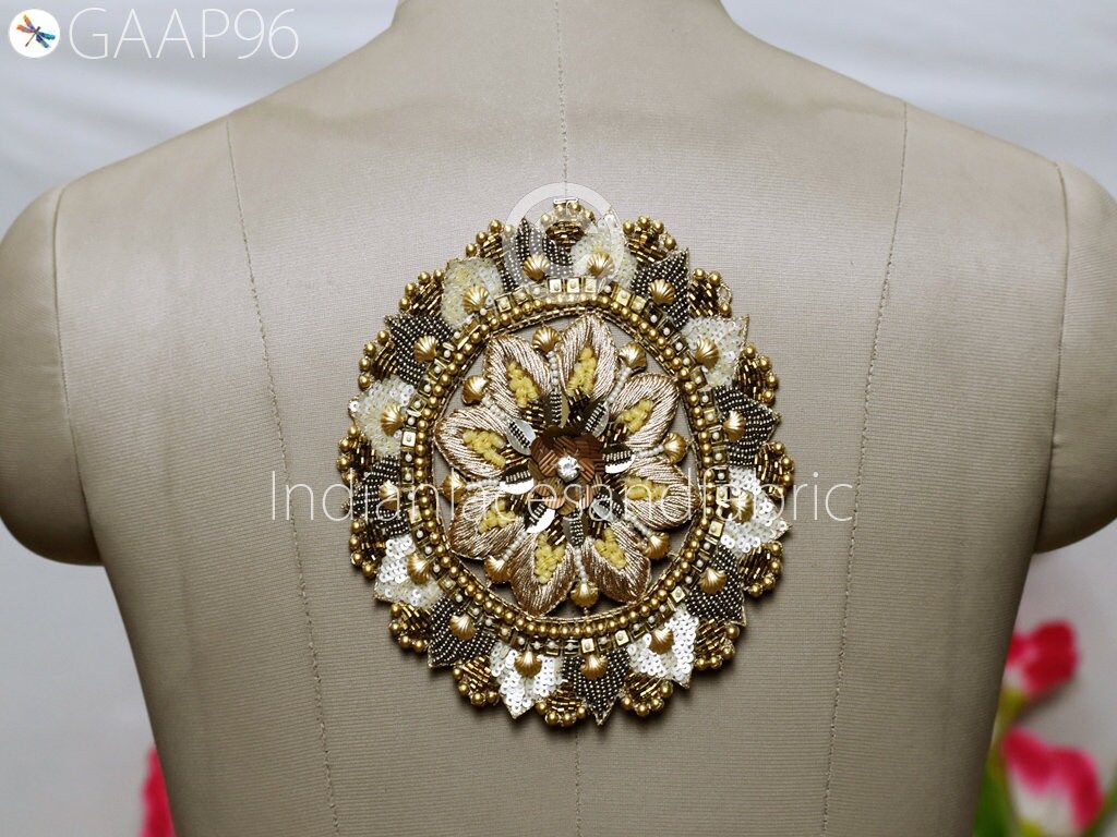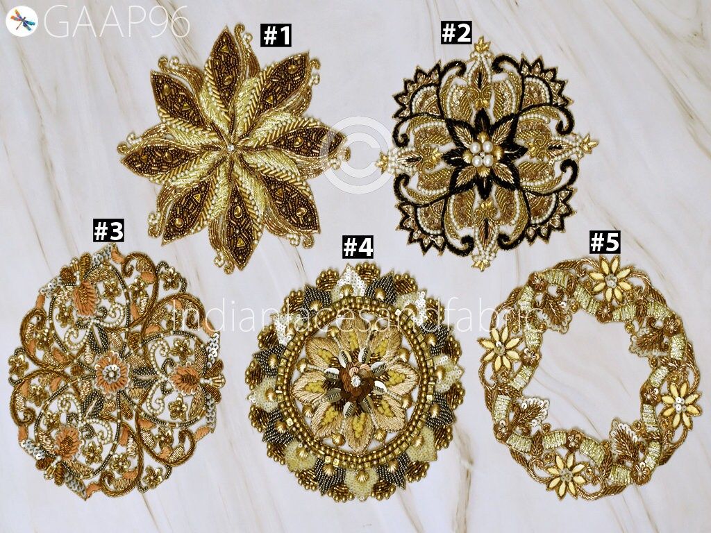 2 Pc Mandala Gold Indian Patches Appliques Dresses Handmade Thread Embroidered Applique Decorative Sewing Crafting Sewing Clothing Accessories, Indian Patches Appliques, Christmas applique, Applique for dress, Headband Applique, applique designs, Handcrafted Appliques