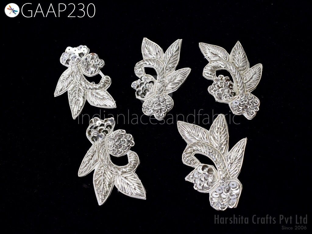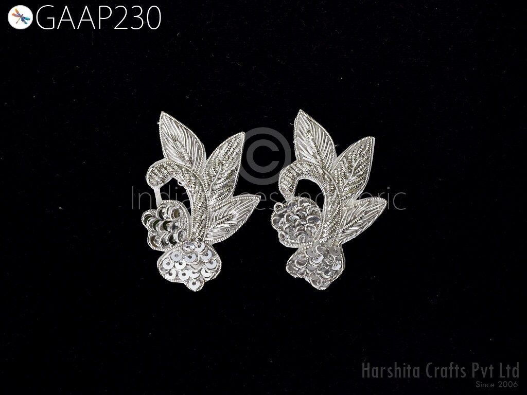 20 Piece Gold Appliques are extremely beautiful applique (sew on applique or you can paste it with fabric) in Coral and golden finish which gives the exclusive look. Each of them is decorated with Zardozi work, Silk Thread work to make it a perfect piece for embellishing a wedding dress, Wedding Skirt or a sari.