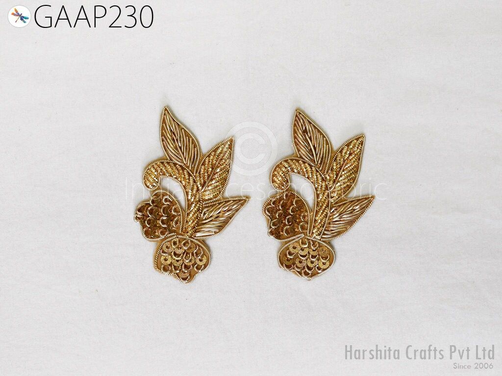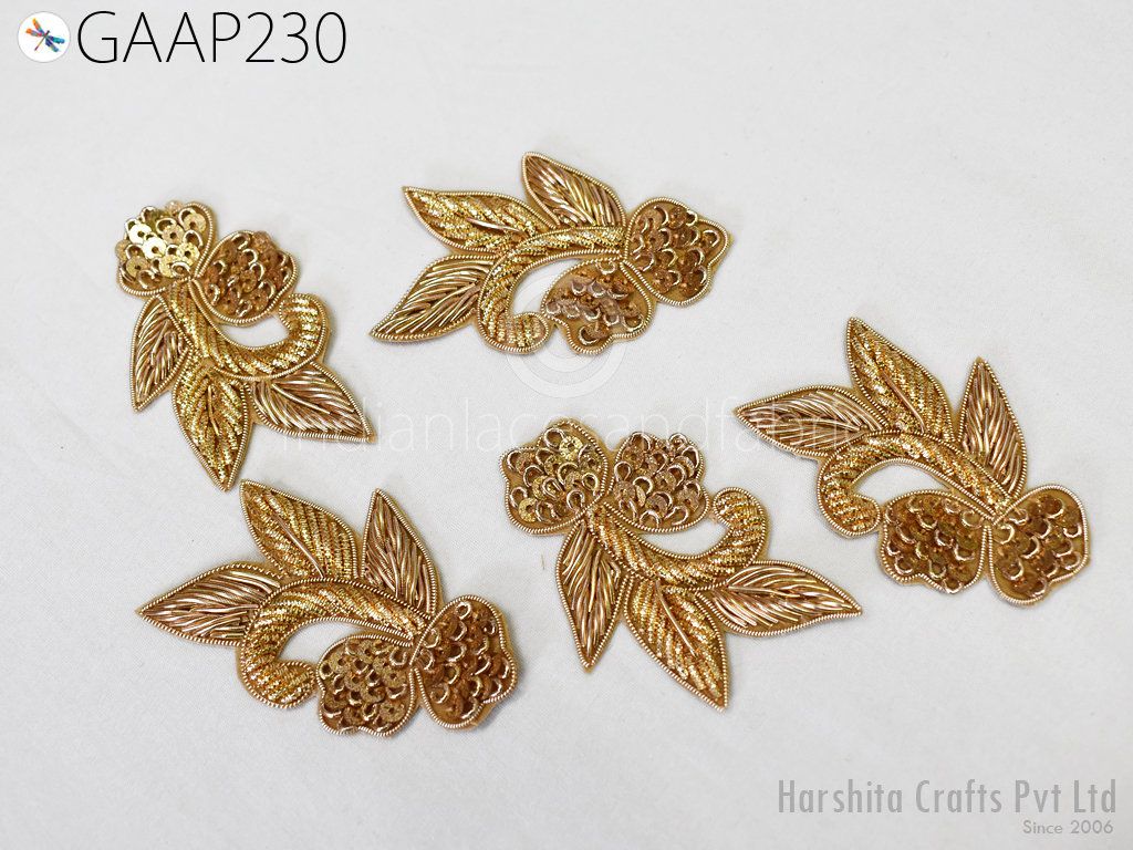 20 Piece Gold Indian Applique Golden Patch Bullion Sewing Accessories Dress Crafting Handcrafted Zardosi Work Appliques Scrapbooking Patches, Applique for dress, Christmas applique, Golden Appliques, Headband Applique, applique designs, Handcrafted Appliques, Scrap booking Appliques.