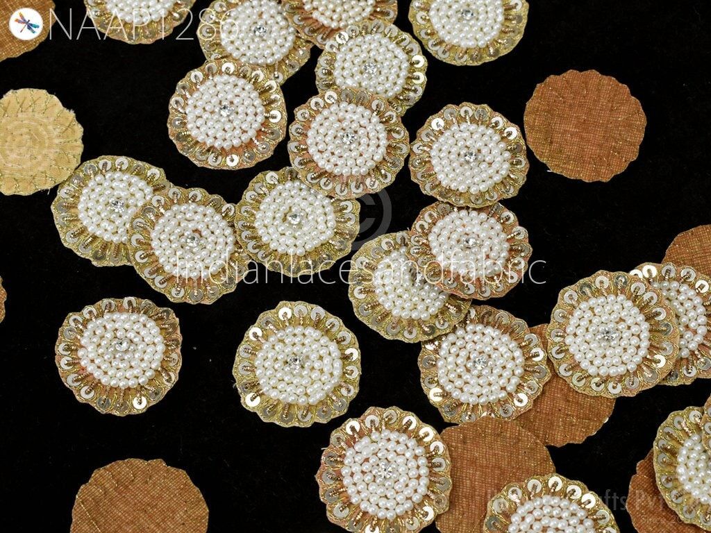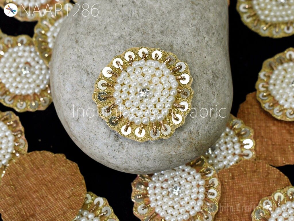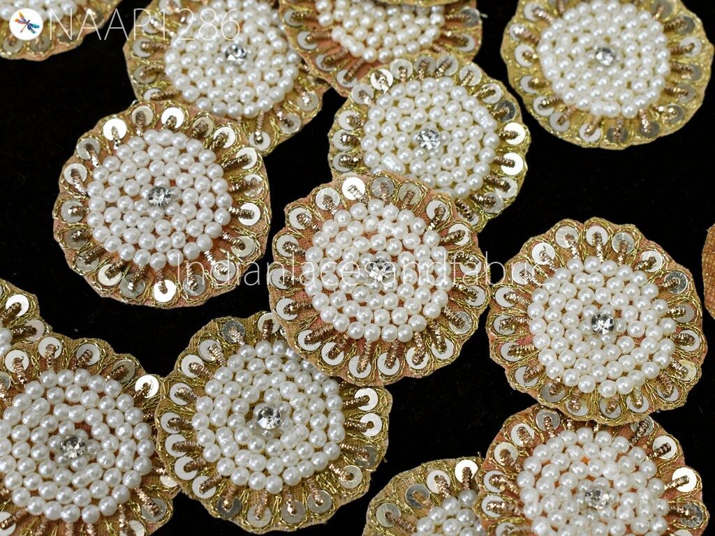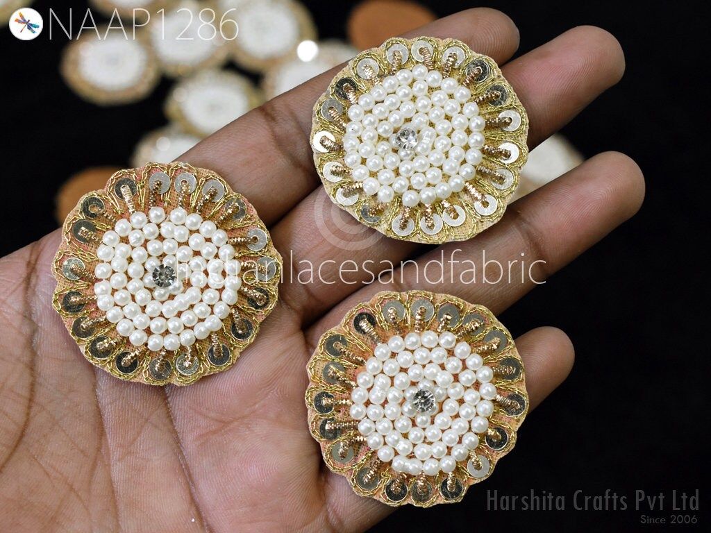 Small Round Design Appliques extremely beautiful sew on applique. Each of them is decorated with rhinestones, Zardozi work and Zari Thread to make it a perfect piece for embellishing a wedding dress, Wedding Skirt or a sari. Bridal Belt, Sari, Dresses, Cushion Covers, Headbands making, hats, gown, Purse etc.