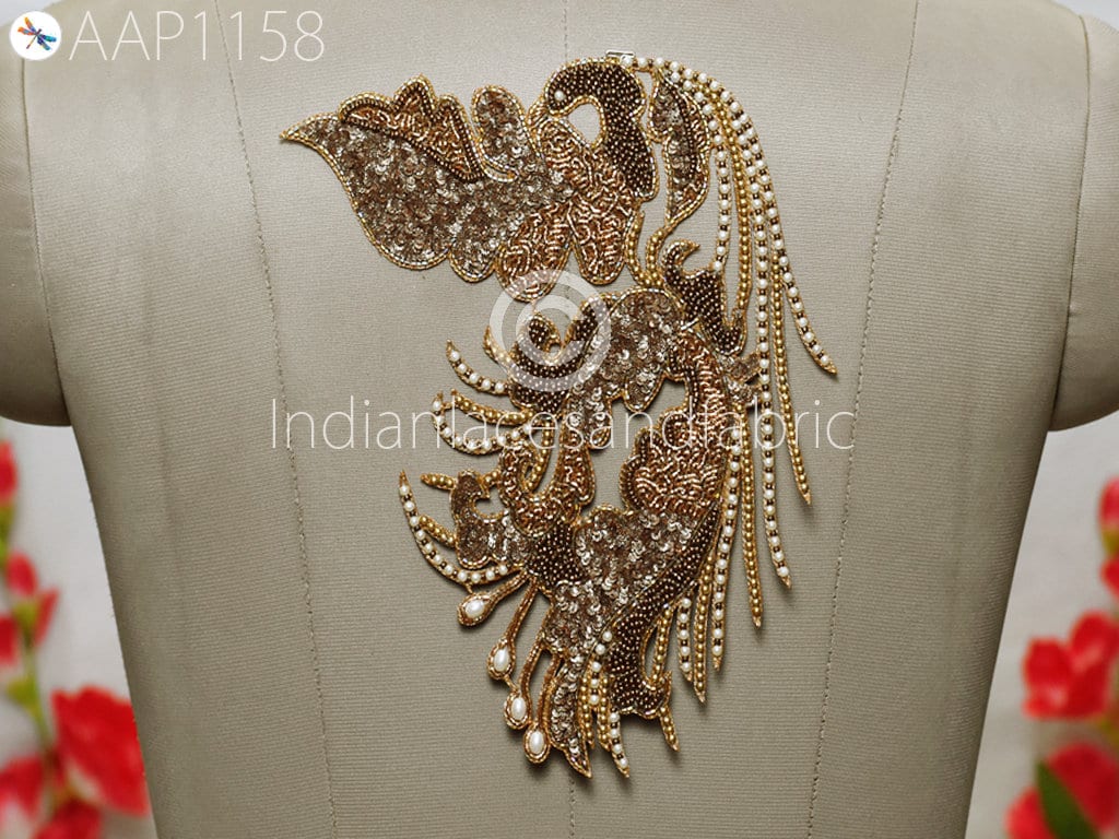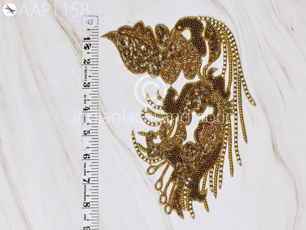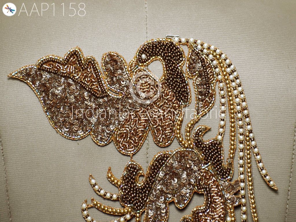 Beaded Patches Gold Applique Decorative Embroidered Indian Sewing Wedding Dresses Costumes Appliques Handmade DIY Crafting Cushion Covers Applique for dress, Headband Applique, applique designs, Handcrafted Appliques, Scrap booking Appliques