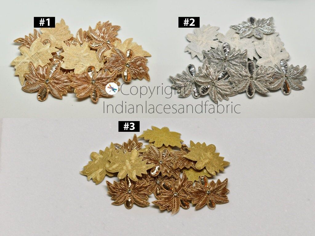 30 Indian Golden Handcrafted Appliques Patch DIY Crafting Decorative Patches Embroidery Rhinestone Beaded Bridal Wedding Dress Headbands, Handcrafted Applique, Sequins Patches, Wholesale Applique And Patches, Indian Applique, Christmas Applique, Appliques For Decoration