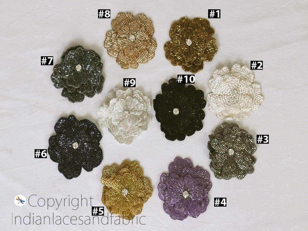 3 Pair of Flower Design Appliques in 10 Color are extremely beautiful applique (sew on applique or you can paste it with fabric) in Embroidery which gives the exclusive look. Each of them is decorated with beads work to make it a perfect piece for embellishing a wedding dress, Wedding Skirt or a sari.