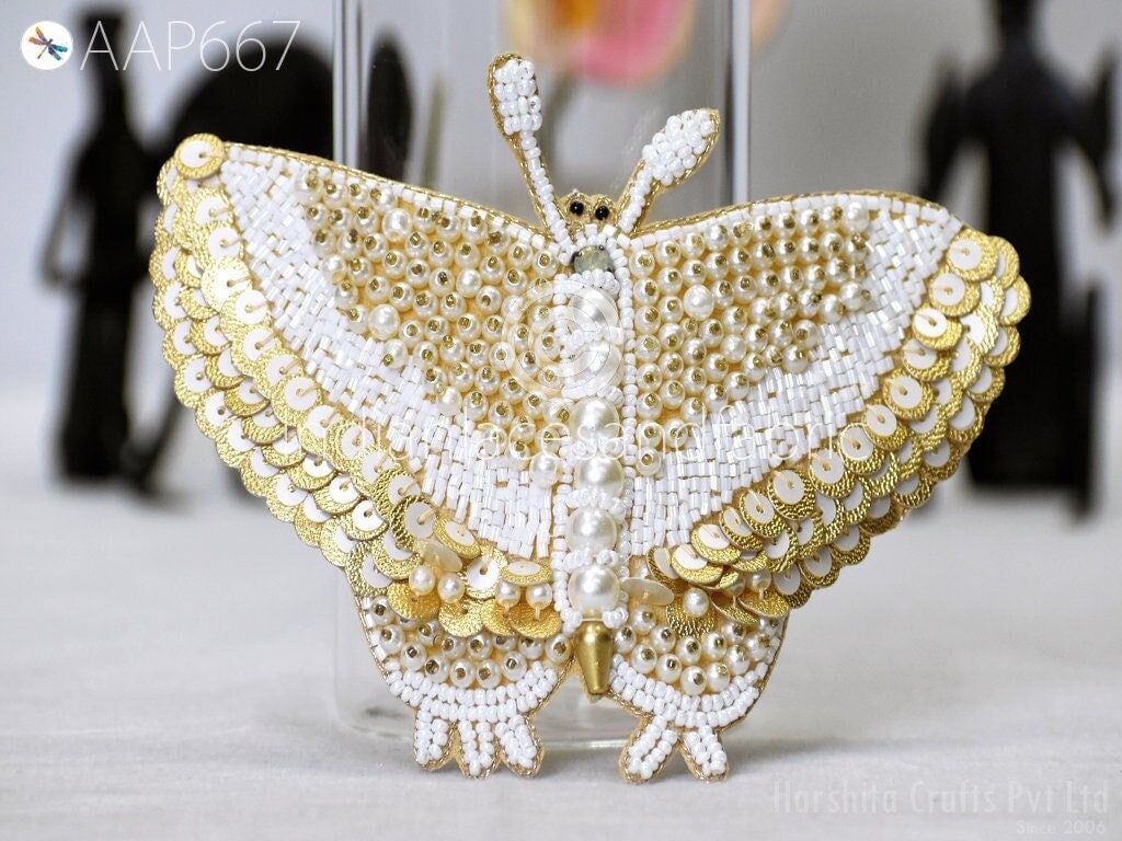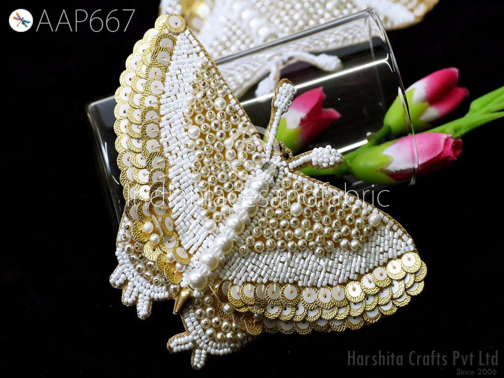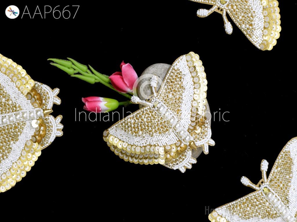 4 Pc Butterfly Beaded Patches Applique Handmade Embroidered Indian Sewing Decorative Dress Patches Appliques DIY Crafting Supply Home Decor, Beaded Appliques, Appliques Wholesaler, Butterfly Appliques, White Patches, Appliques Design