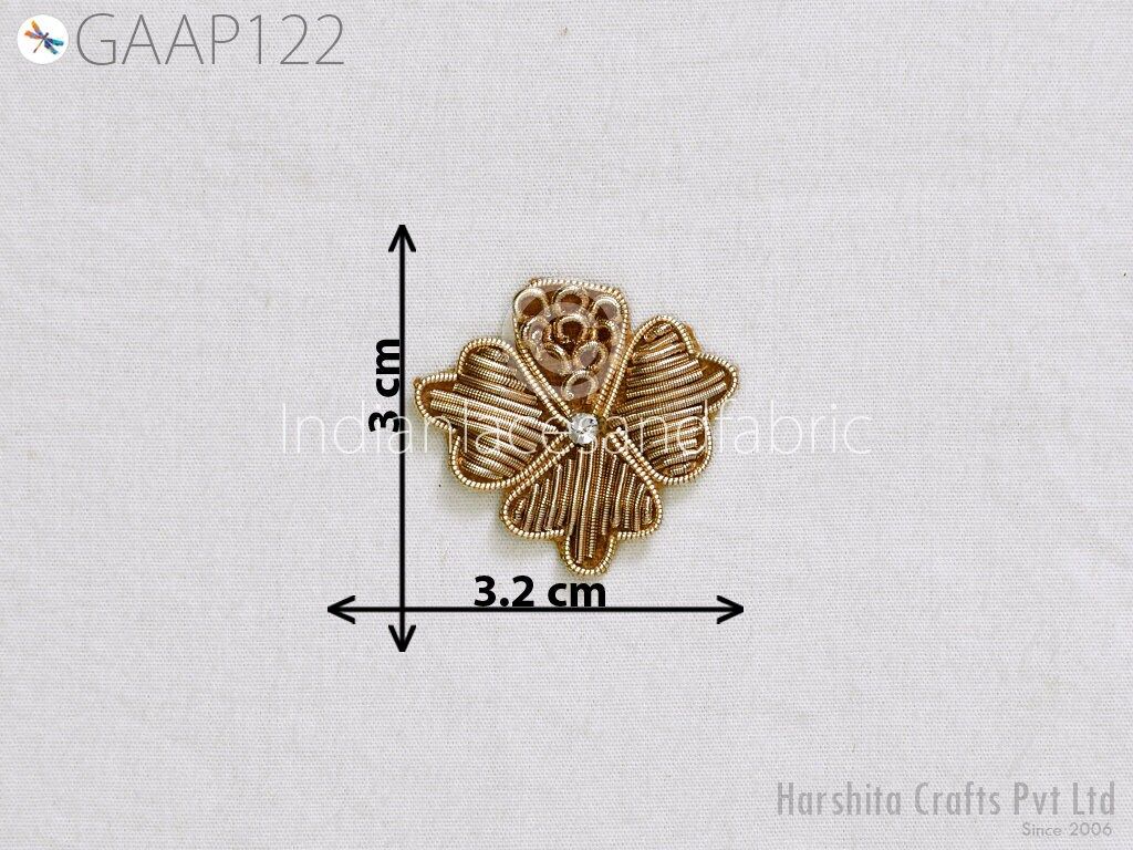 40 Pc Handmade Appliques 3 cm Zardozi Embroidered Patches Flower Indian Sewing Wedding Dresses Handcrafted DIY Crafting Supply Embellishment