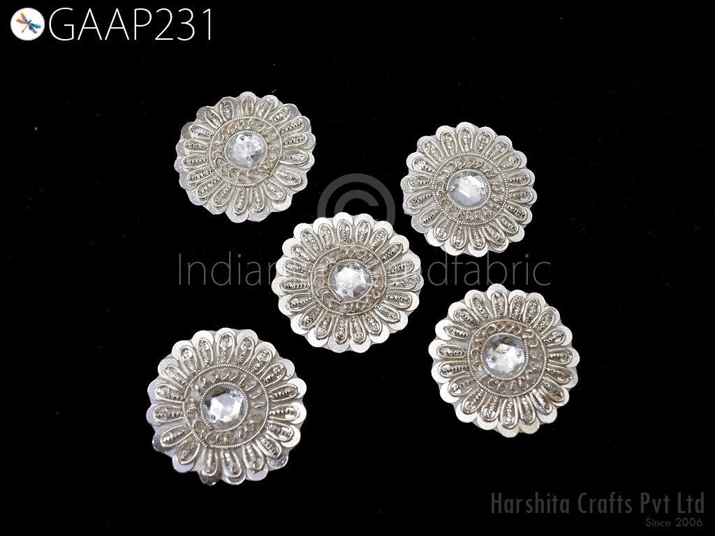 40 Silver Rhinestone Appliques: Zardozi Indian Embellishments (3.5cm)