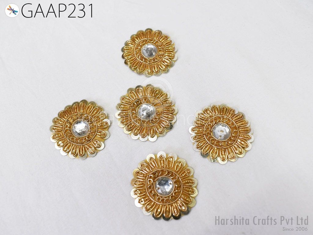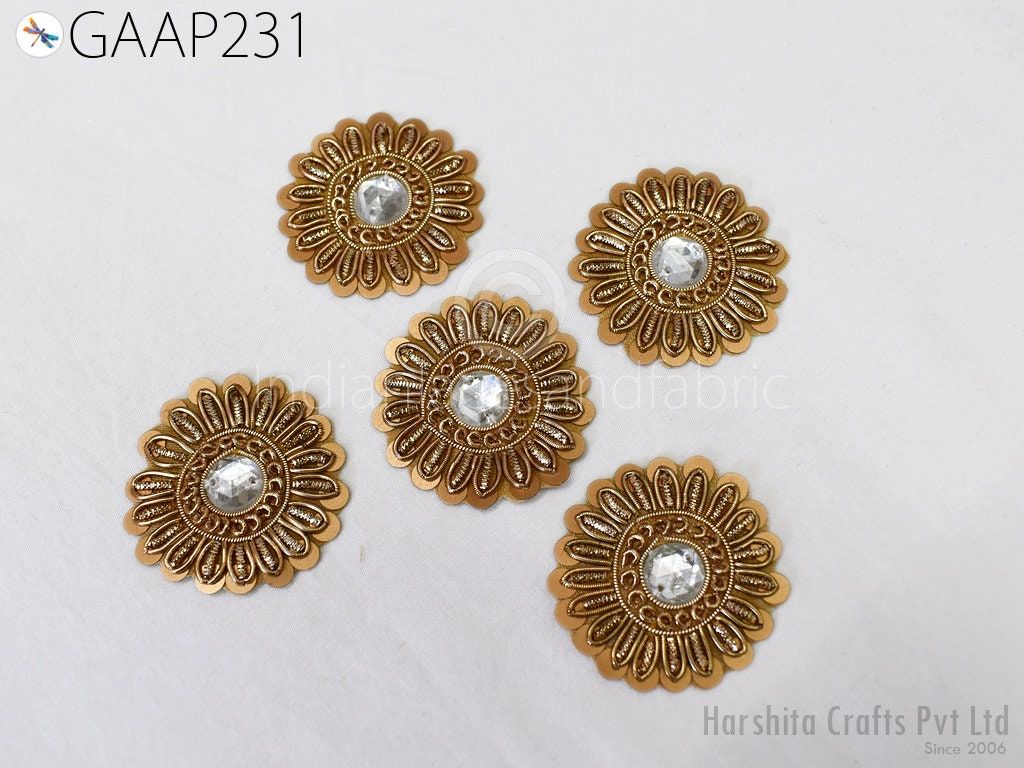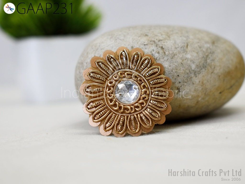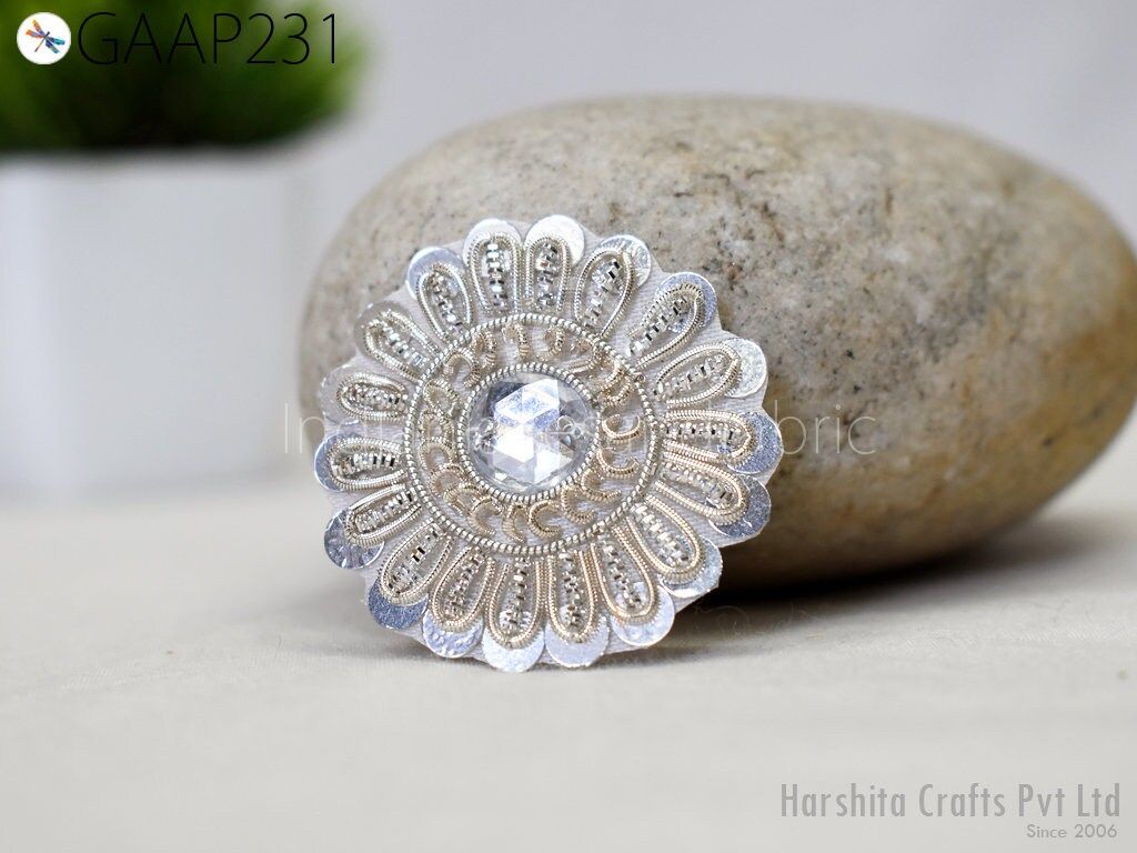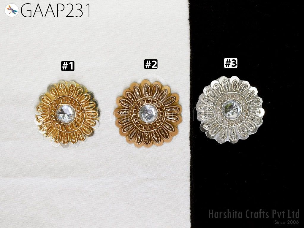 Small Round Design Appliques extremely beautiful sew on applique. Each of them is decorated with rhinestones, Zardozi work and Zari Thread to make it a perfect piece for embellishing a wedding dress, Wedding Skirt or a sari. Bridal Belt, Sari, Dresses, Cushion Covers, Headbands making, hats, gown, Purse etc.