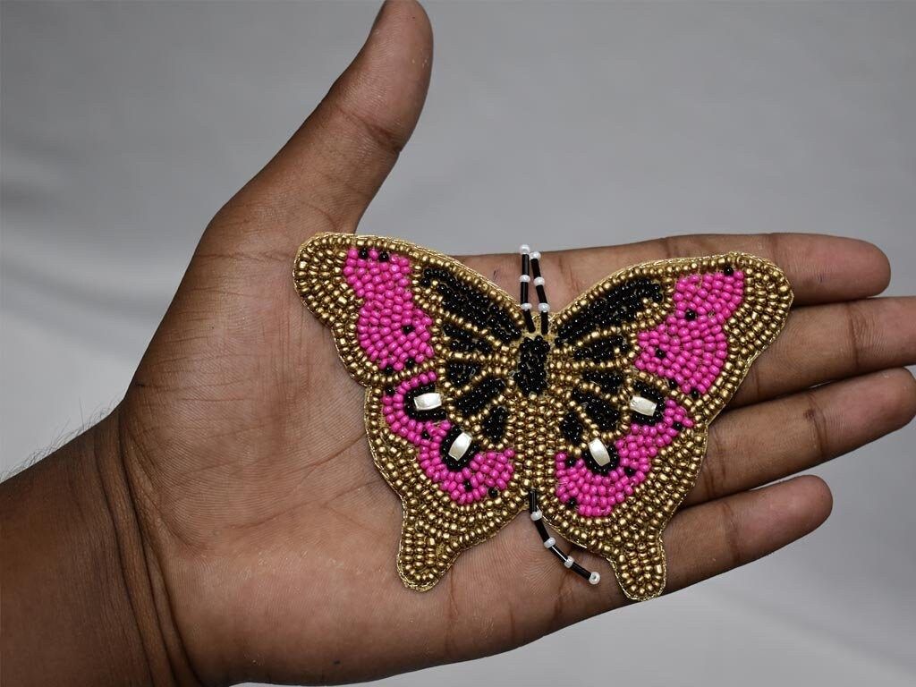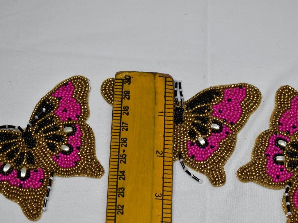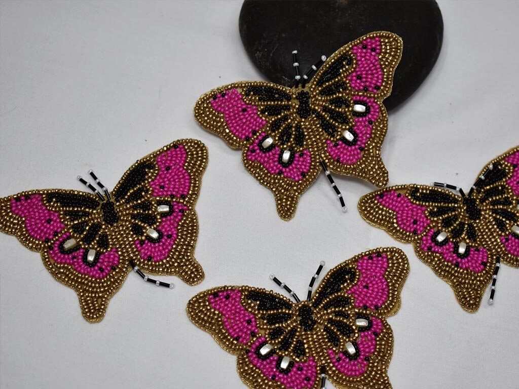 5 Pc Handcrafted Butterfly Magenta Decorative Patch Beaded Craft Embroidery Applique Sew on Patches denim jacket collar shoes sweater skirts Indian Patches Appliques, Christmas applique, Applique for dress, Headband Applique, applique designs, Handcrafted Appliques, Scrap booking Appliques