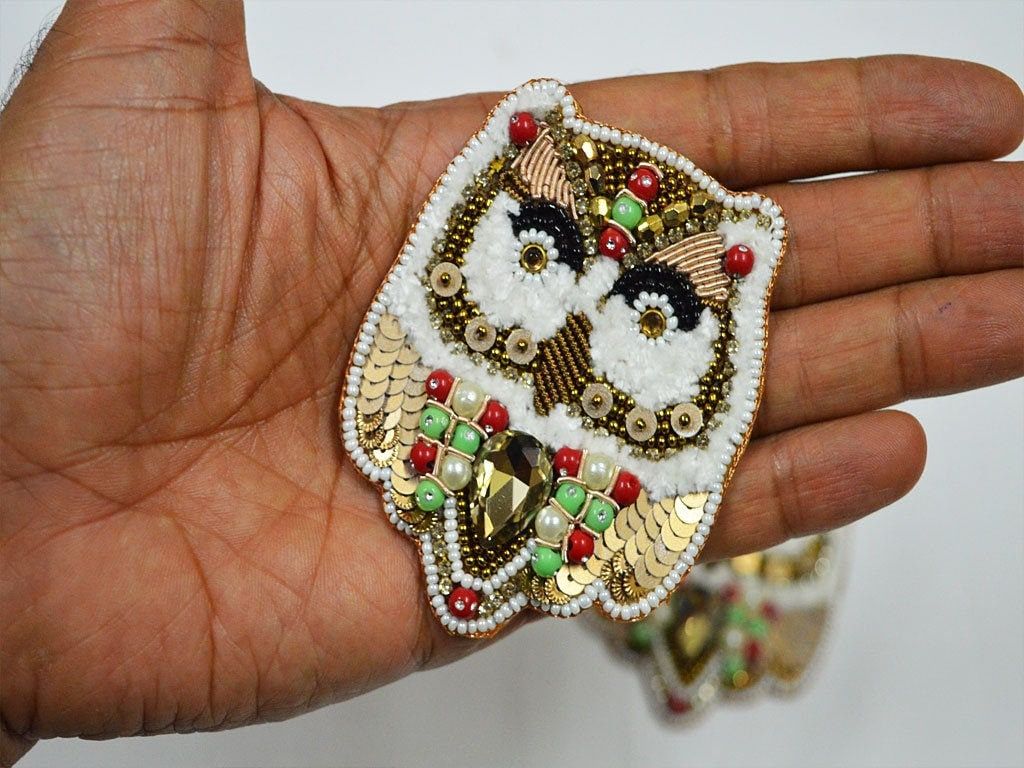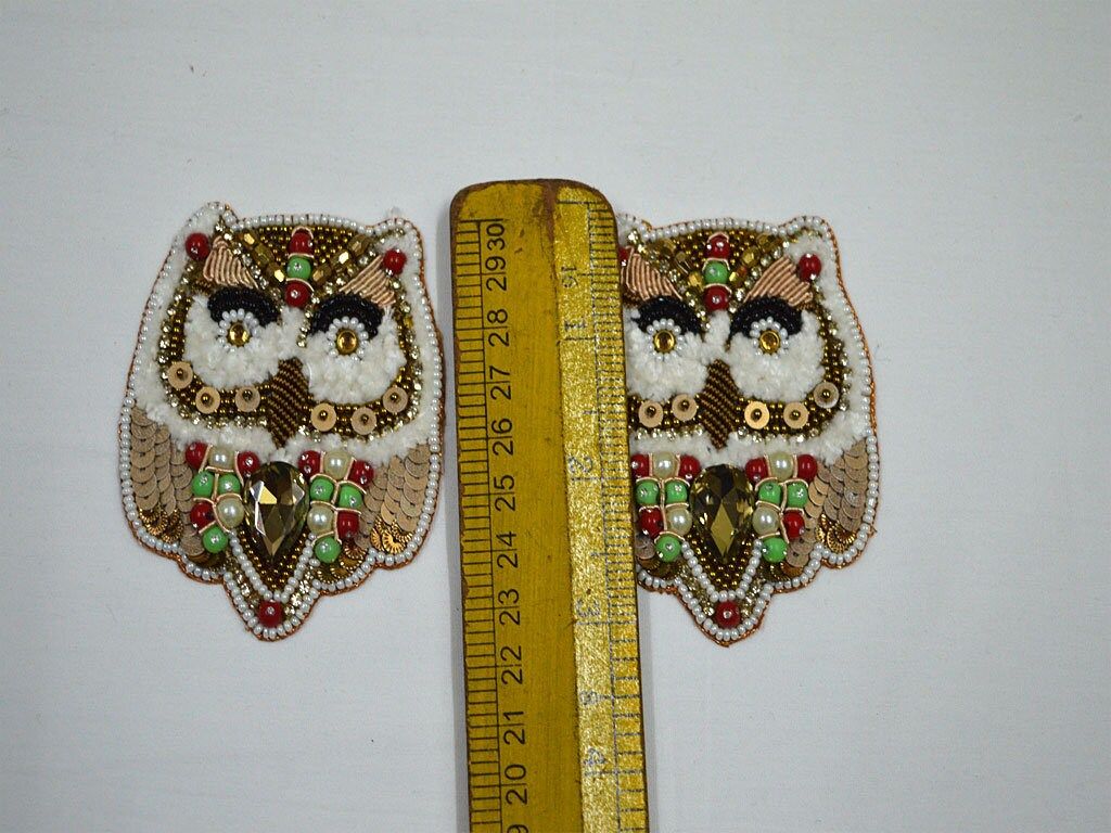 Handmade Patches Owl Embroidered Indian Sewing Decorative Thread Applique Dresses Patches Appliques Crafting Supply Beaded Patches, Festive Wear Appliques, Designer Appliques, Floral Appliques, Sequins work appliques.