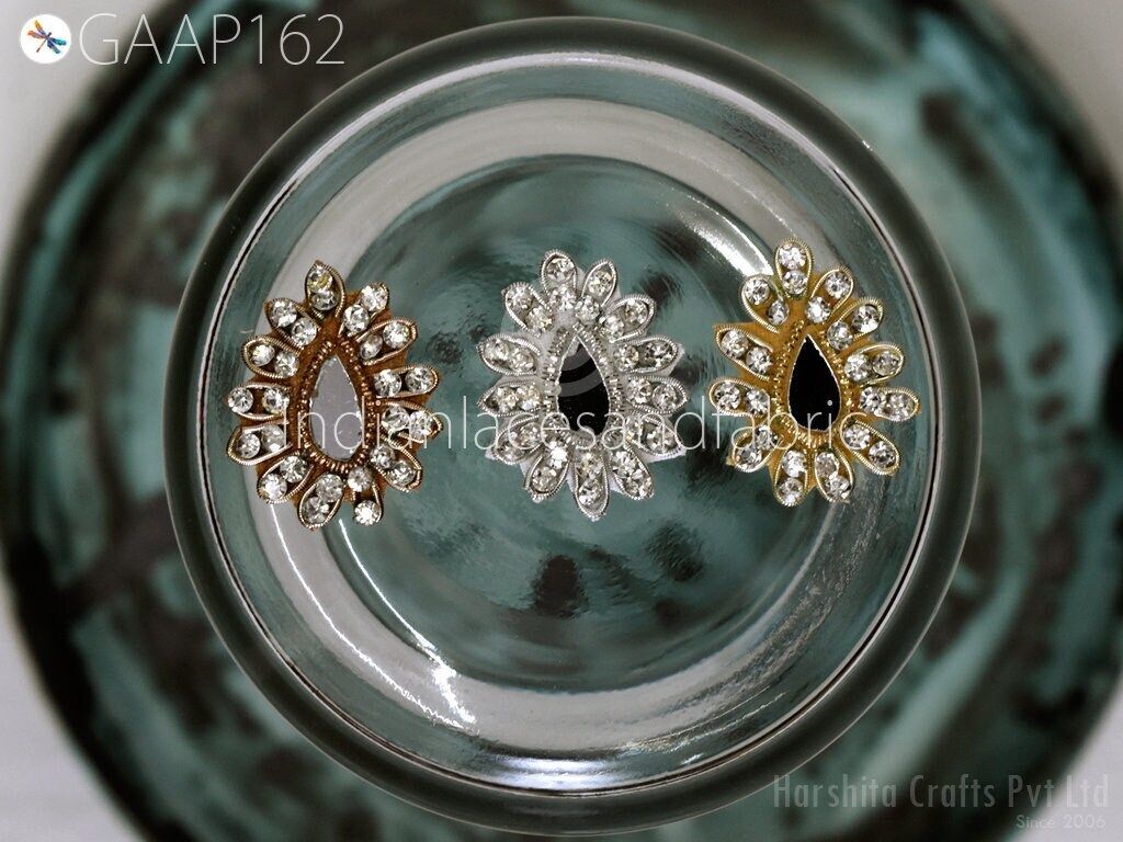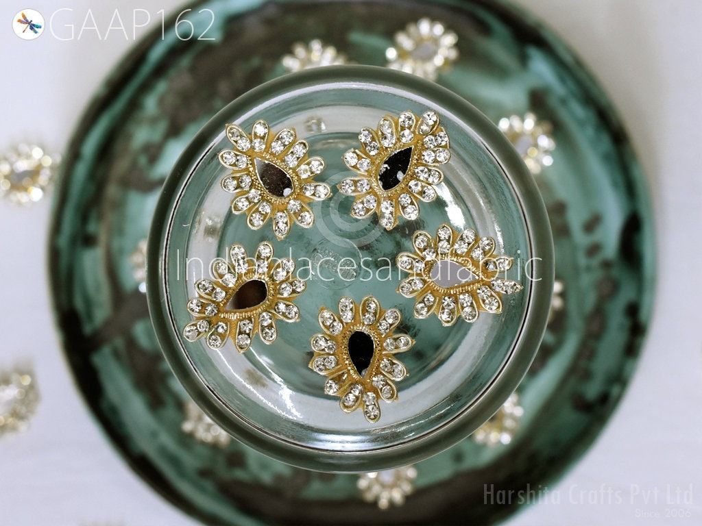 Handcrafted 50 Antique Gold Rhinestone Appliques, Indian Paisley Appliques, Beaded Bridal Dress Patch DIY Sewing Crafting, Sew on Patches, Tiny accessories applique, Small applique for bridal dresses, Tiny flower applique, sewing tiny applique