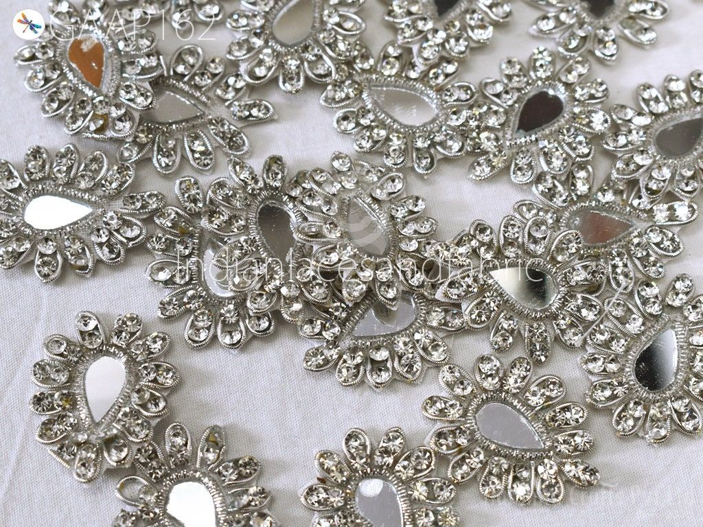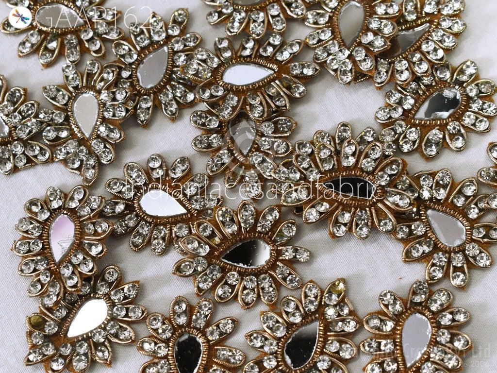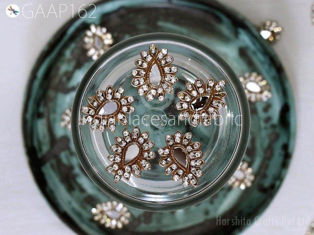 Tiny Paisley Design Appliques extremely beautiful sew on applique. Each of them is decorated with rhinestones, Zardozi work and Real Mirror to make it a perfect piece for embellishing a wedding dress, Wedding Skirt or a sari. Bridal Belt, Sari, Dresses, Cushion Covers, Headbands making, hats, gown, Purse etc.
