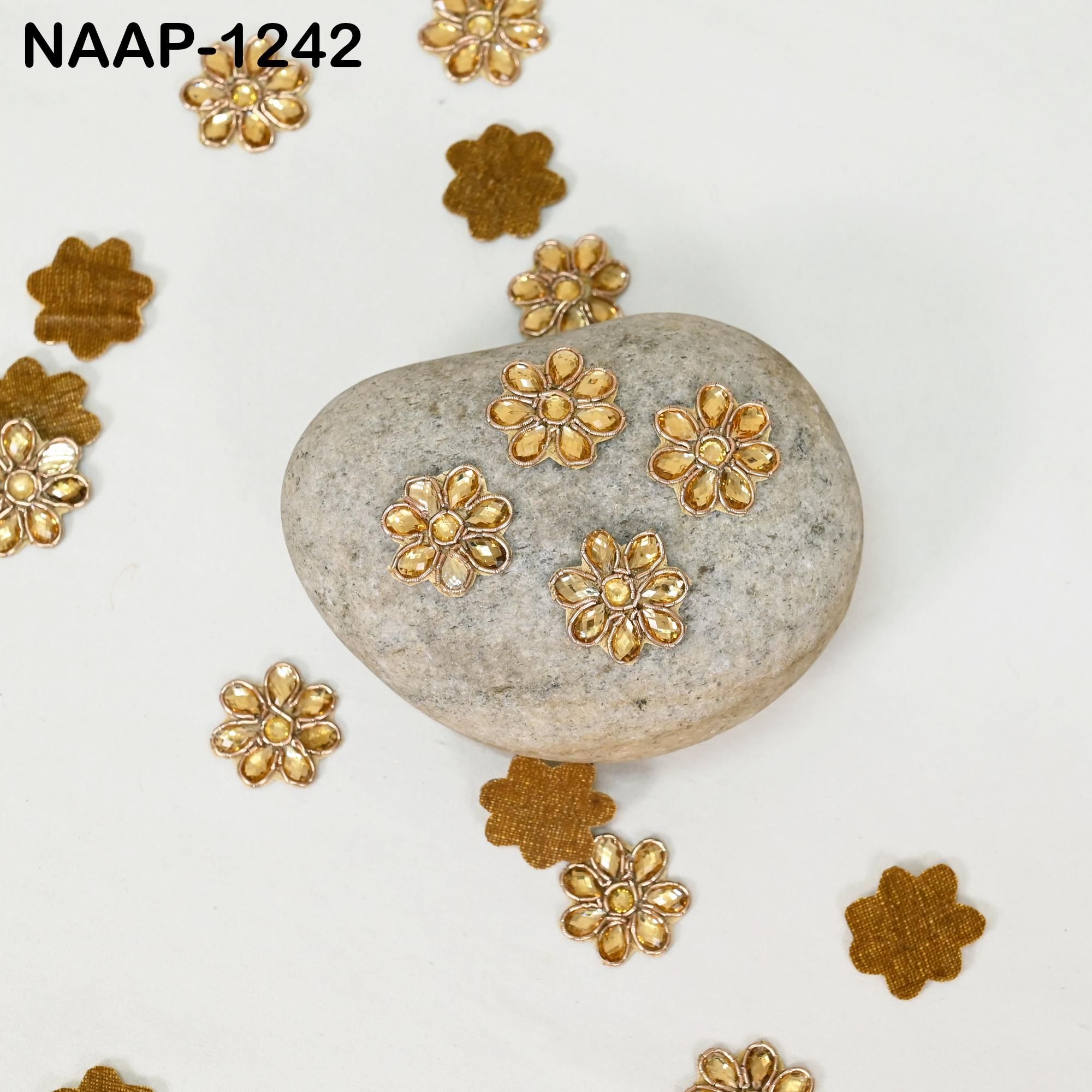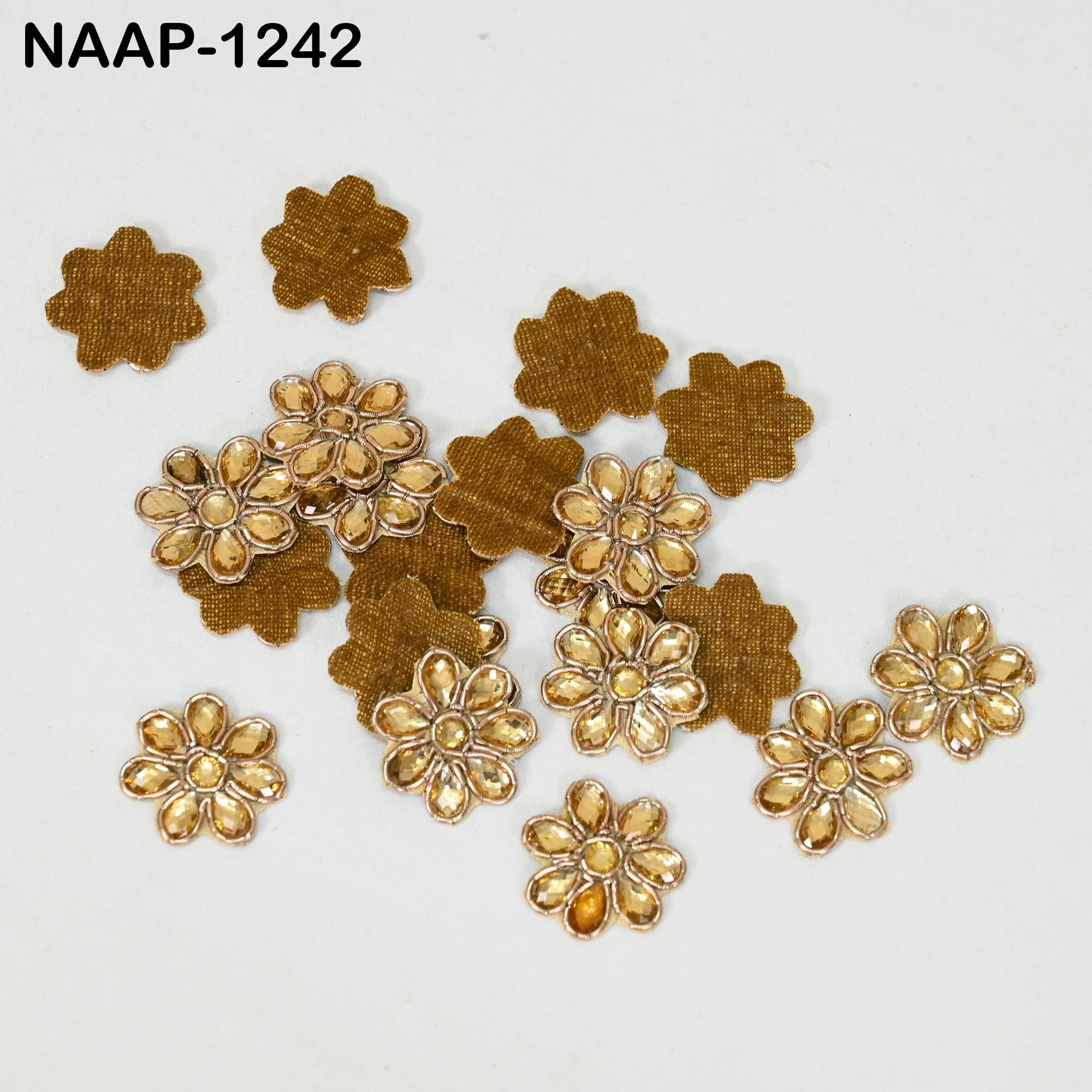 50 Gold Kundan Flower Appliques: Handmade Indian Embellishments