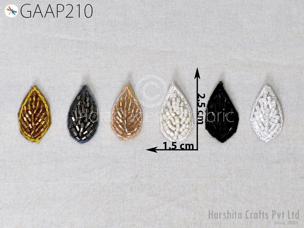 Leaf Design Appliques are extremely beautiful applique (sew on applique or you can paste it with fabric) in Embroidery which gives the exclusive look. Each of them is decorated with Bugle beads work to make it a perfect piece for Boutique material, craft project, women kurtis, Bridal lehenga, Tops, Caps, salwar kameez etc.