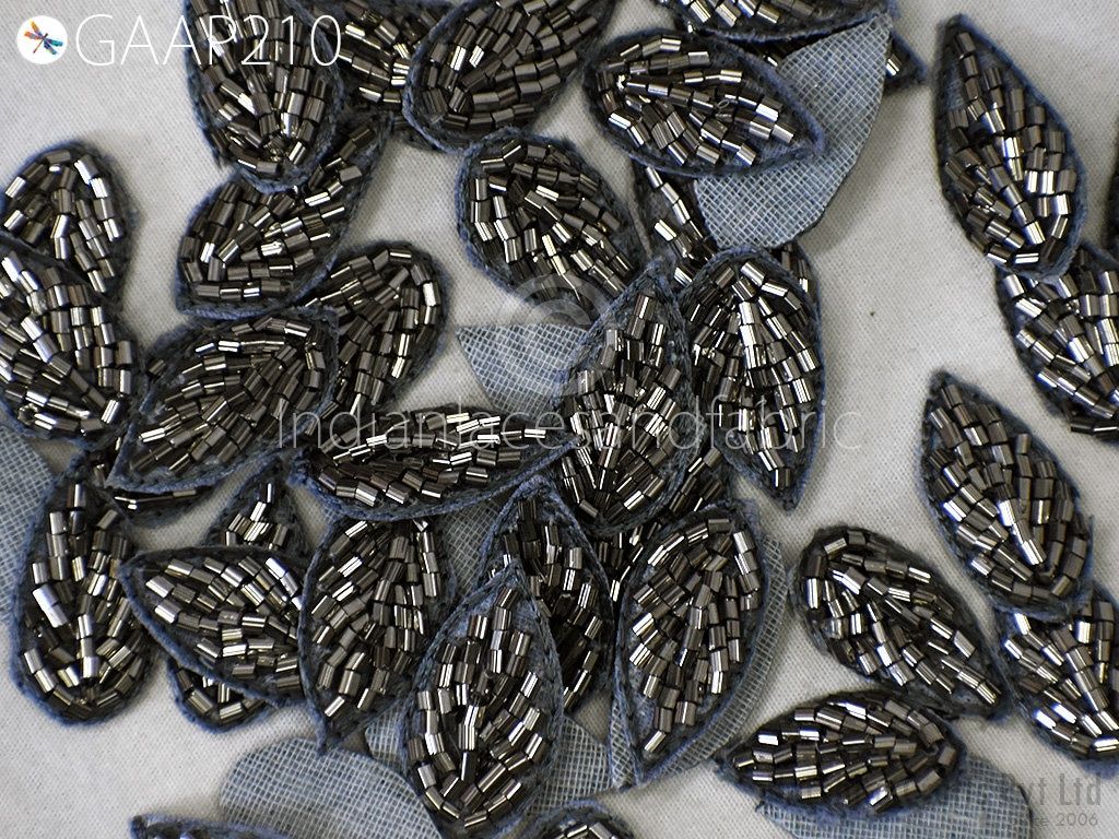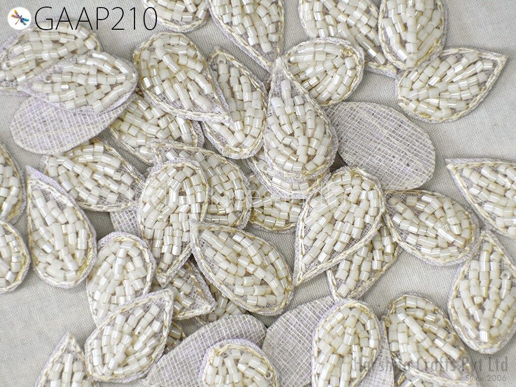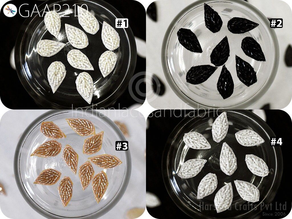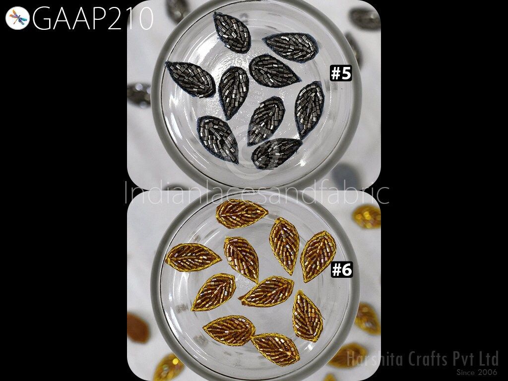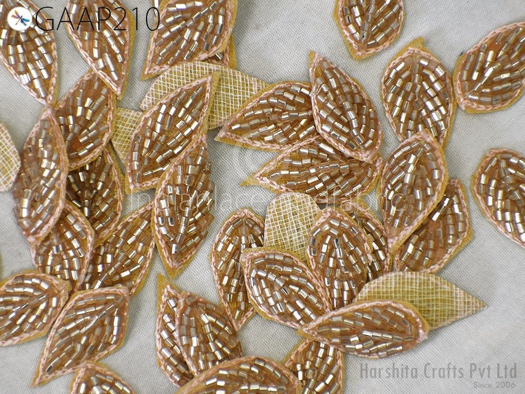 50 Handmade Beaded Leaf Appliques: Indian Zardozi Patches