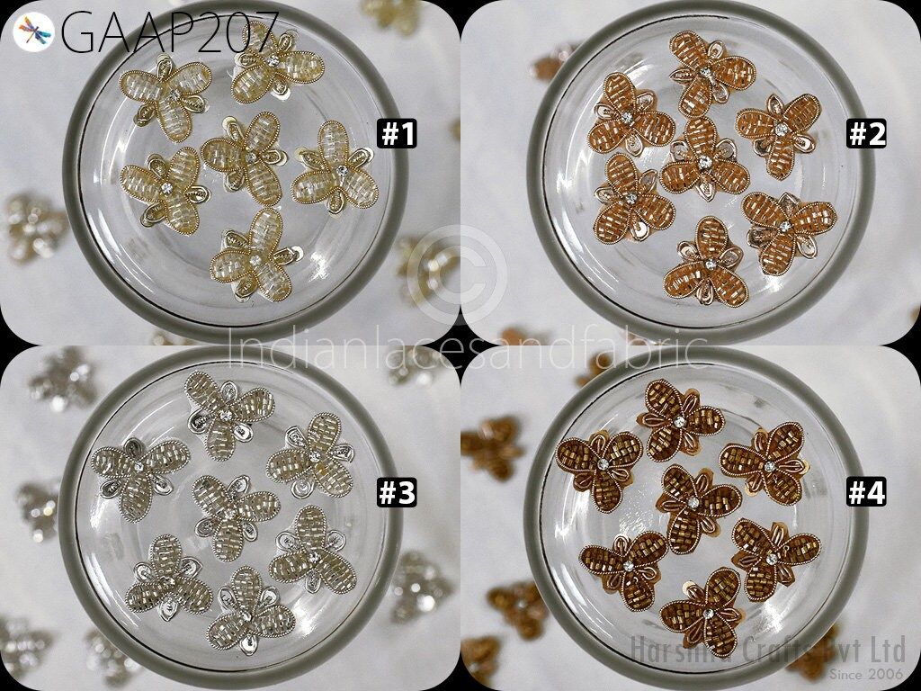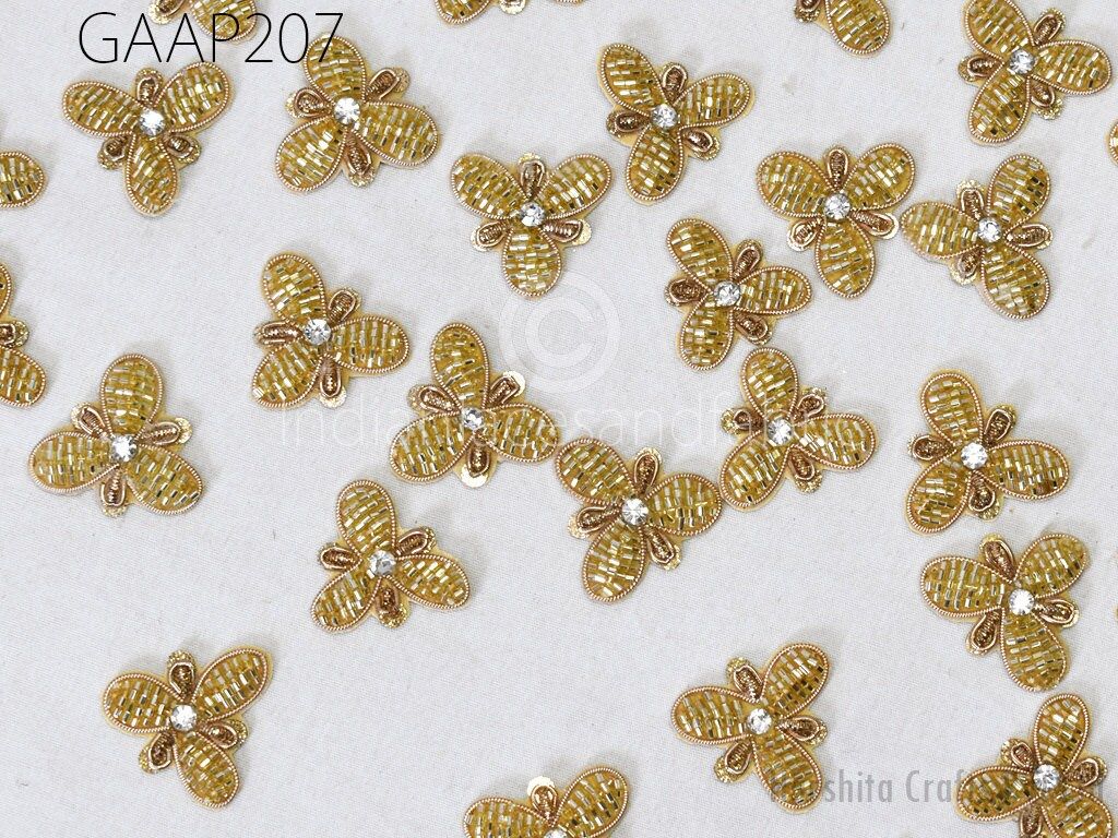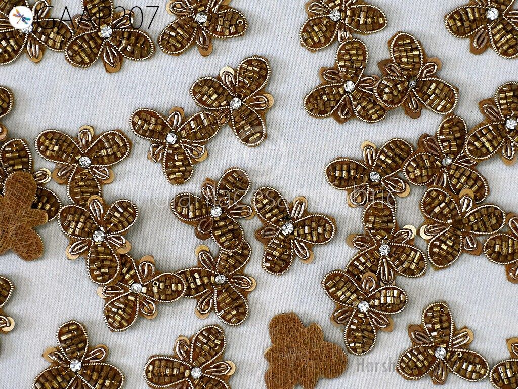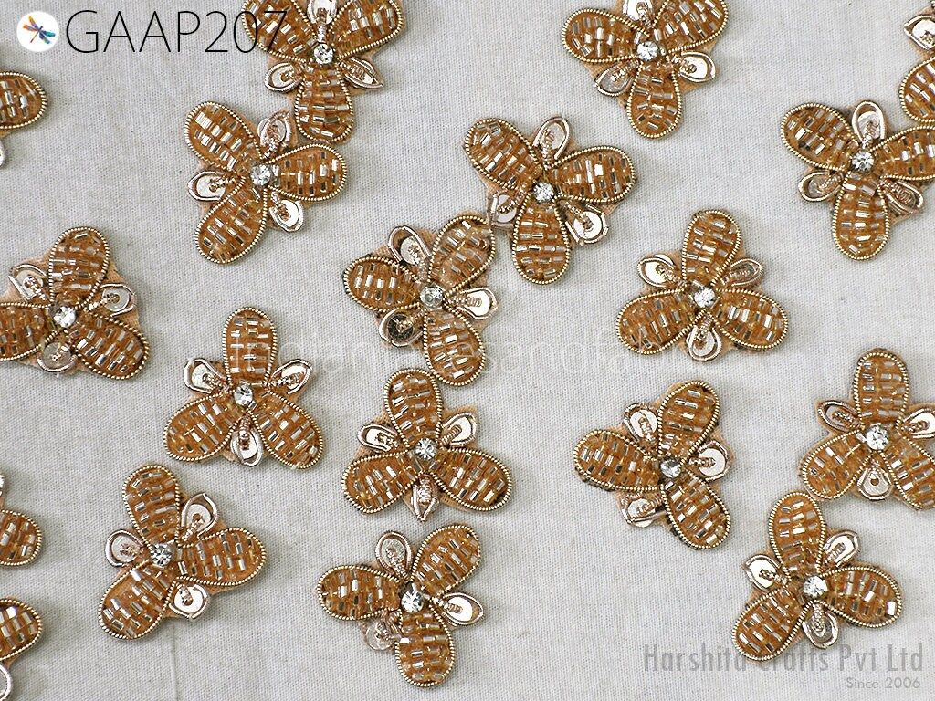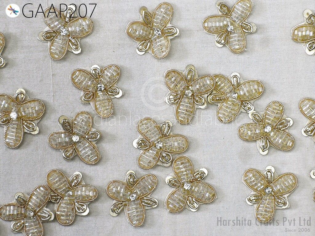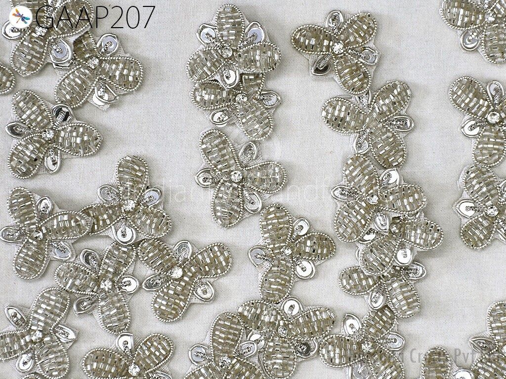 50 pc Handmade Beaded Appliques, Indian Sewing Flower Patches, Wedding Dresses Handcrafted Beaded Patches, DIY Crafting Supply Embellishment
