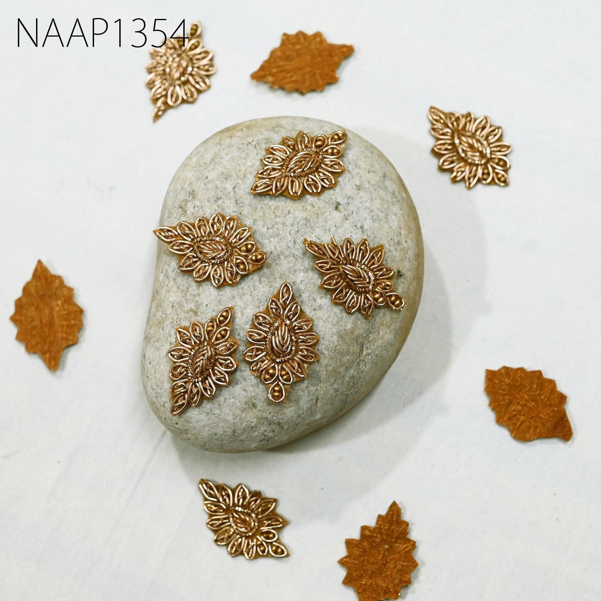 50 Pieces of Leaf Appliques, extremely beautiful sew on applique in Antique golden finish. Each of them is decorated with Sequin Zardozi, Embroidered Thread to make it a perfect patch for embellishing a Lehenga, Dupatta, Bridal Dress, Wedding Skirt or a Sari Blouse.