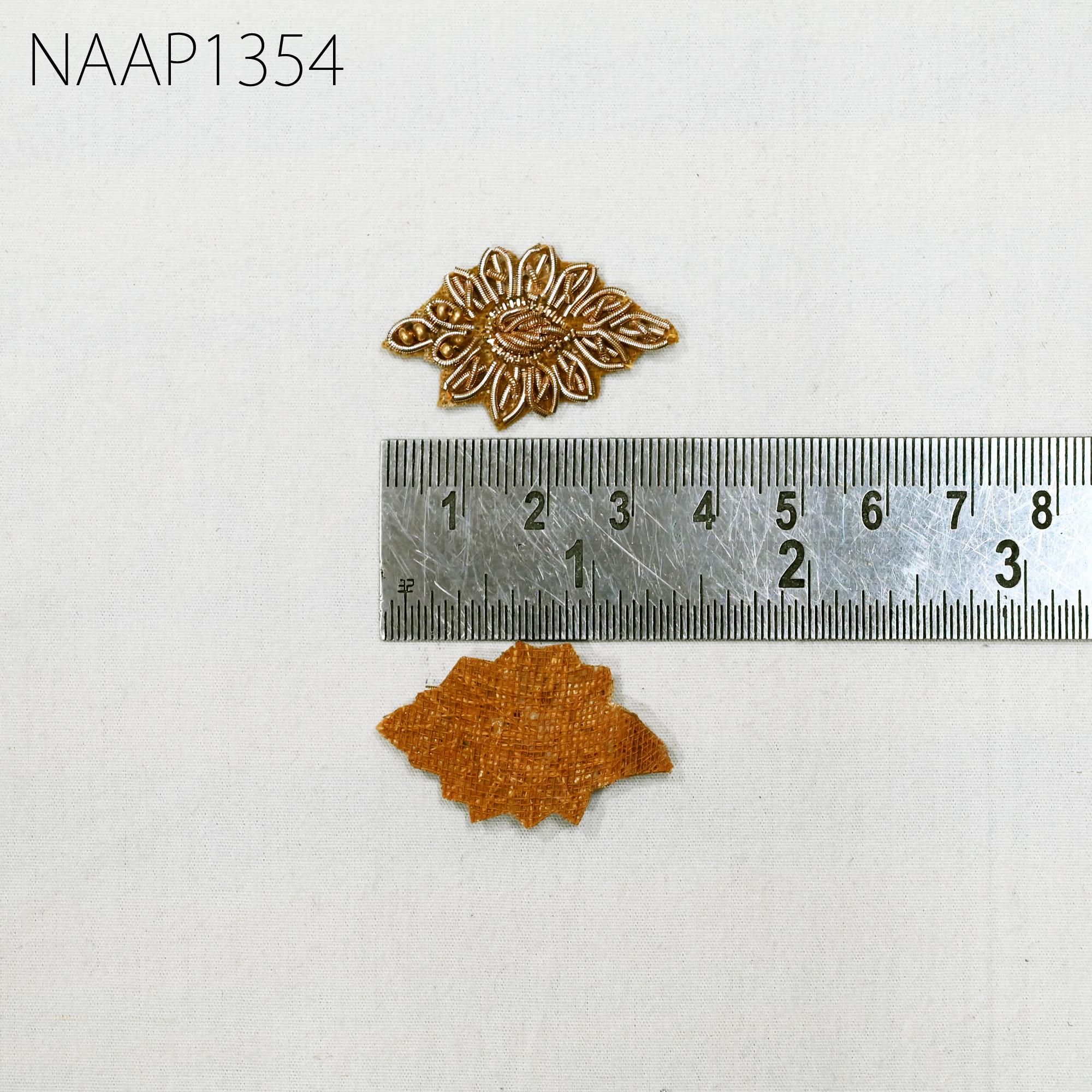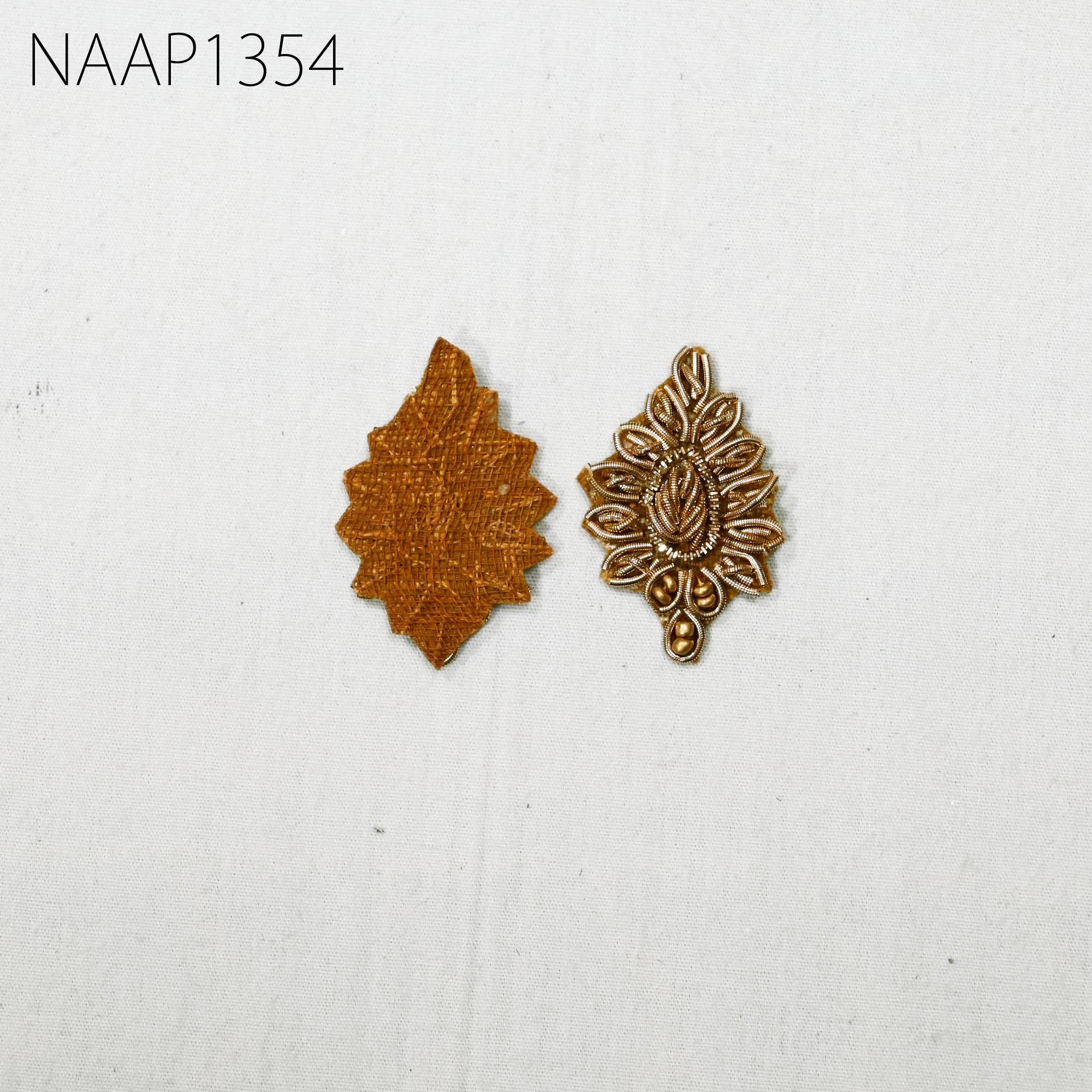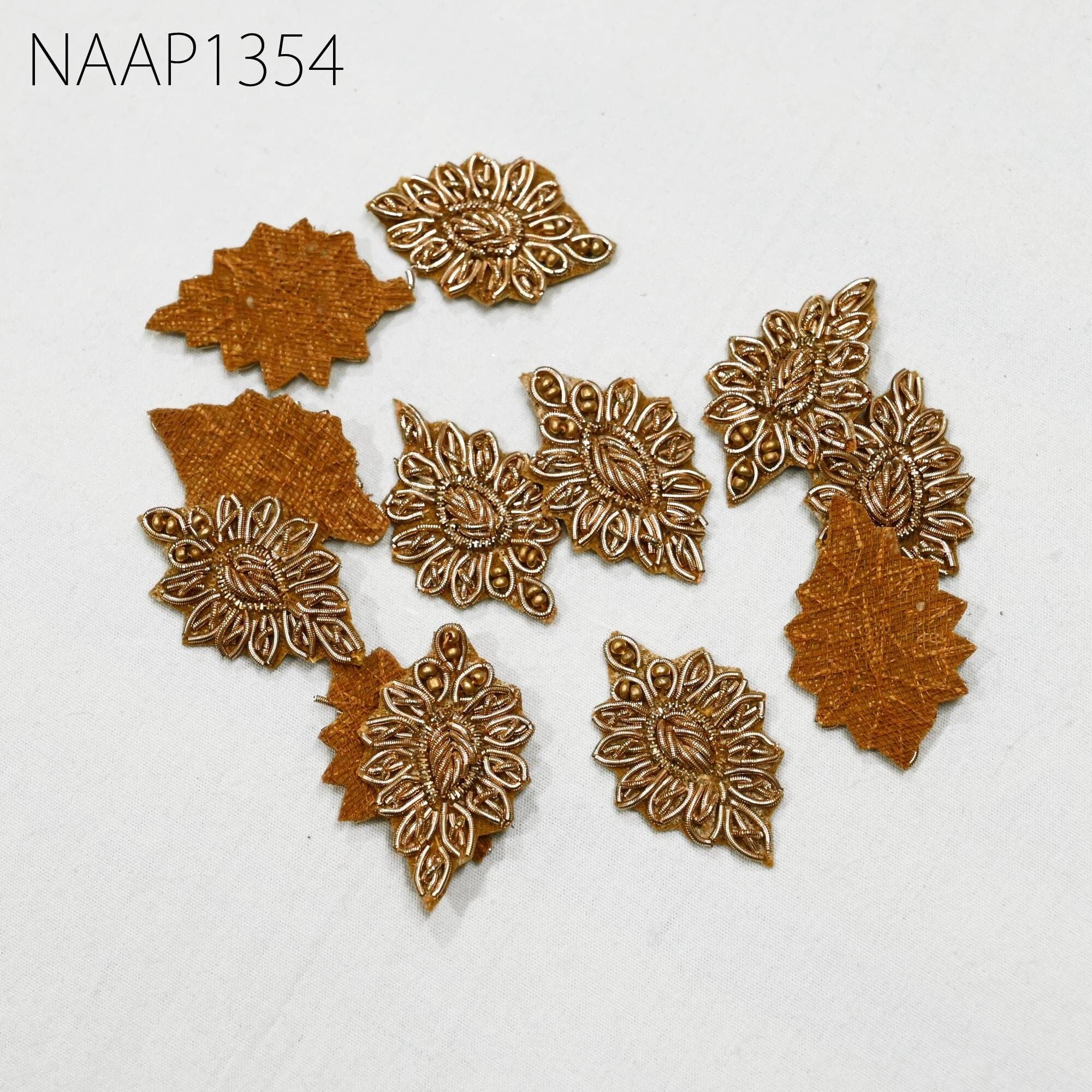 50 pcs Zardozi Leaf Appliques 3.5 cm Indian Handmade Golden Patches Sew on Wedding Dresses, Sari Embellishment Beaded Patch DIY Craft Supply