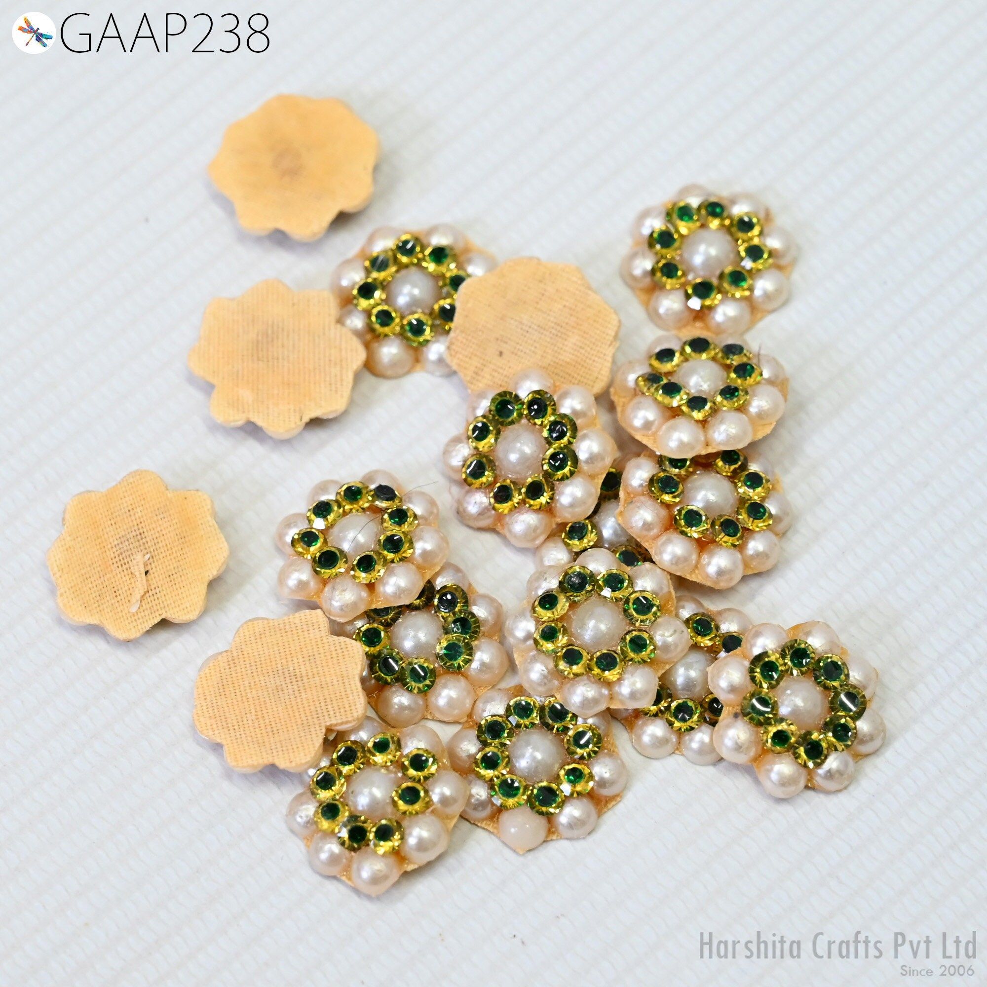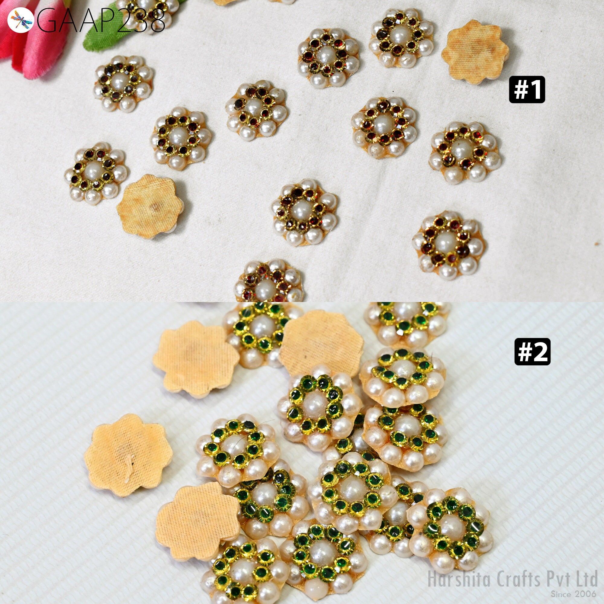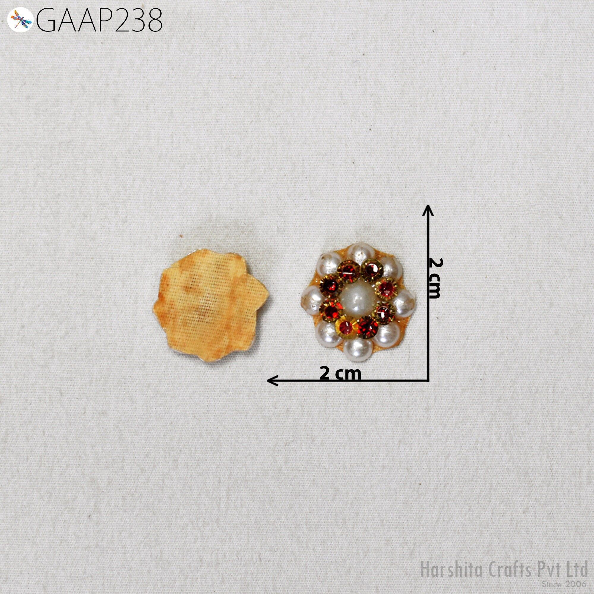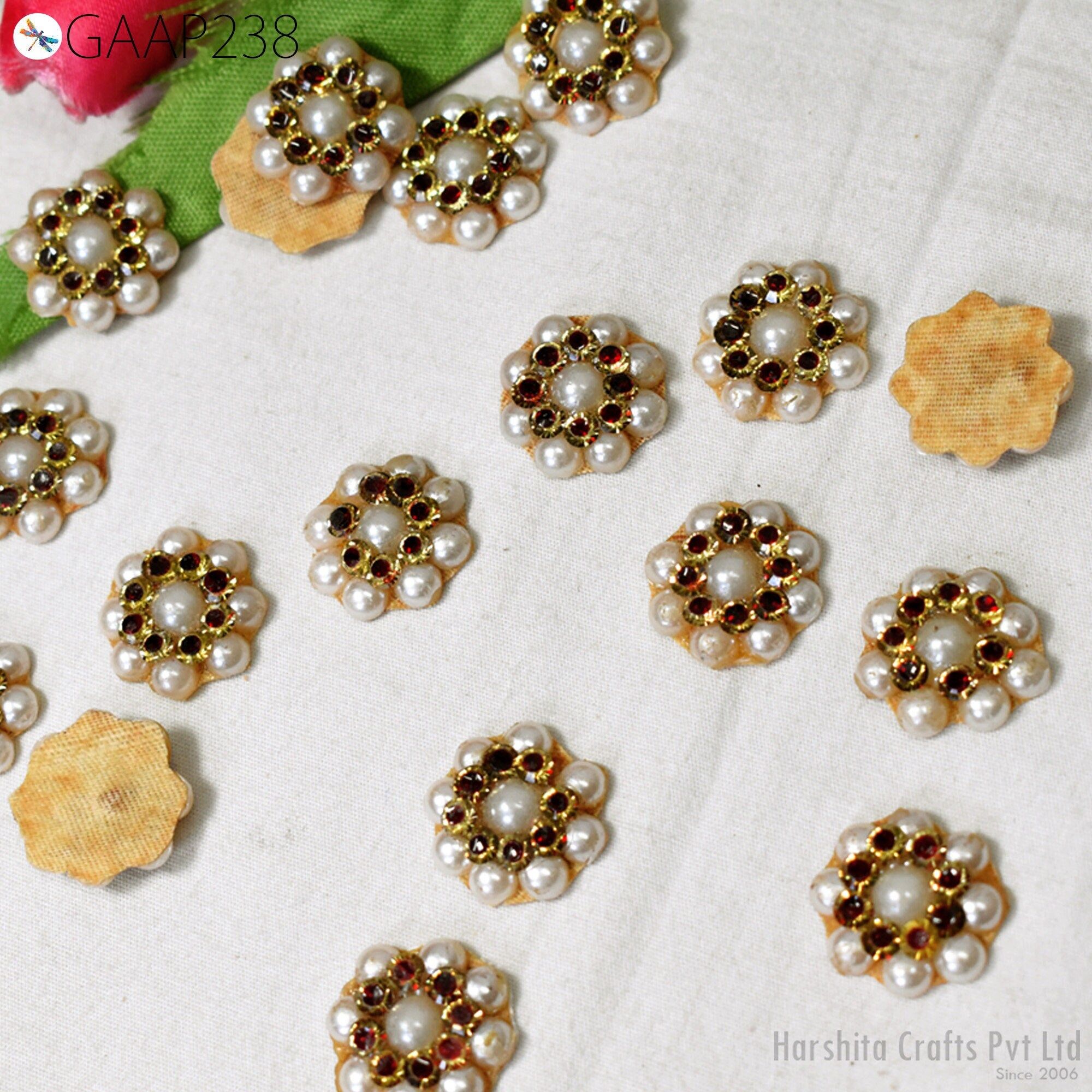 50 Tiny Zircon Flower Appliques: Maroon & Gold Zardosi Embellishments