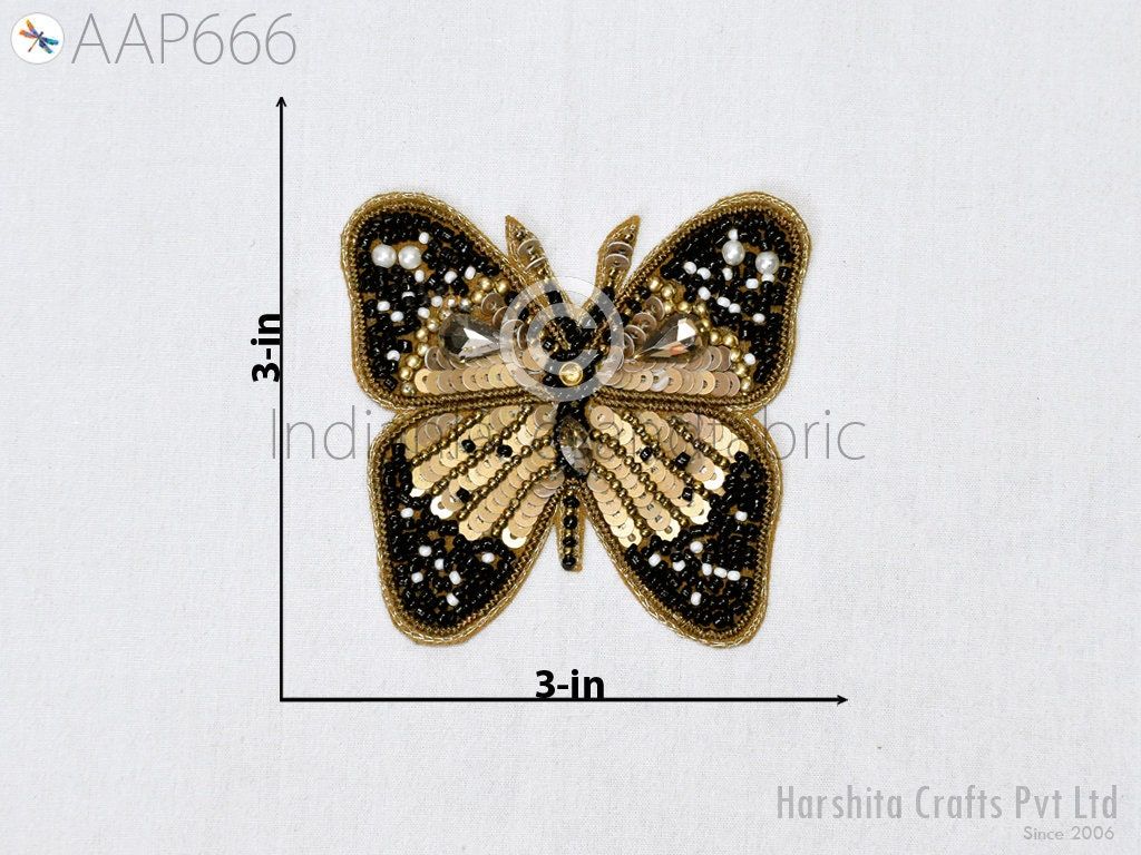 6 pc, 3'' Butterfly Beaded Patch, Costume Applique, Indian Handmade Sequin Embellishment, Headband Costume Dress Sew on DIY Crafting Supply