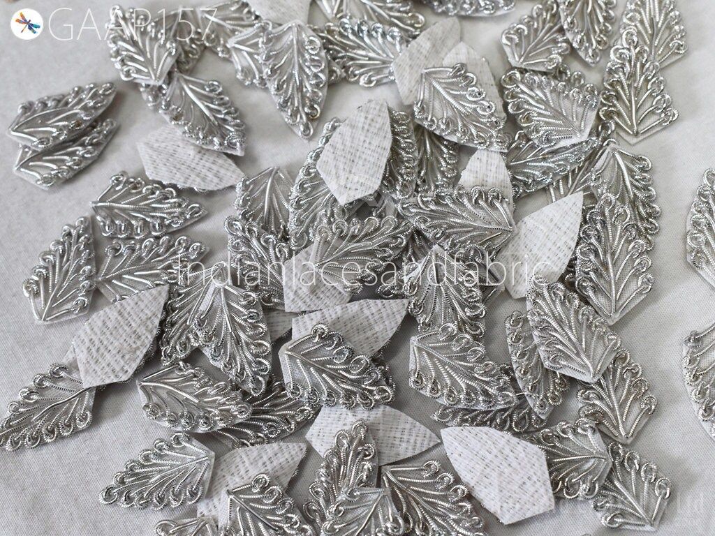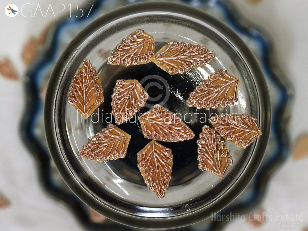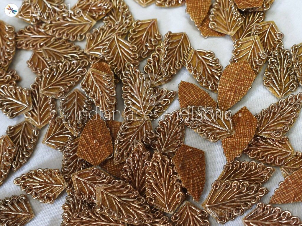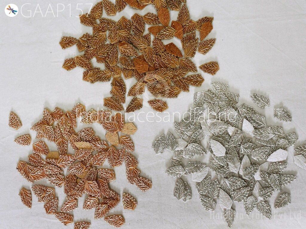 75 Decorative Handmade Patches Leaf Embroidered Indian Sewing Thread Dresses Handcrafted Beaded Patches Appliques Crafting Supply, Christmas gift appliqué, embroidered appliqué, handcrafted appliqué, Indian patches