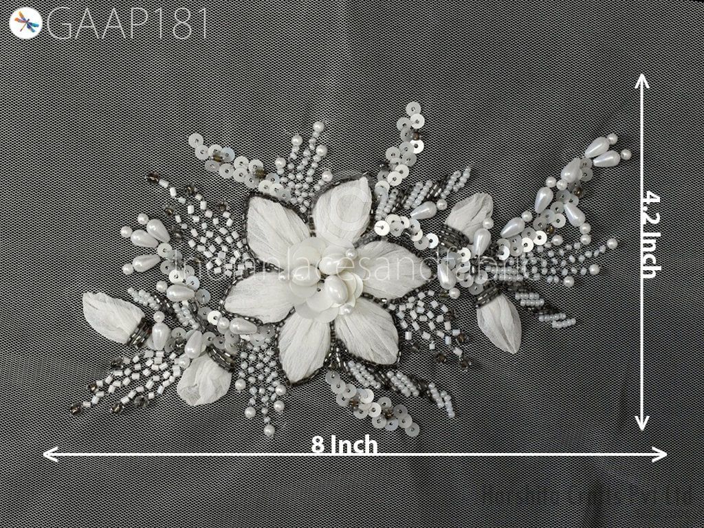 1 Piece Floral Design Appliques Patches are extremely beautiful applique (sew on applique or you can paste it with fabric) in Embroidery which gives the exclusive look. Each of them is decorated with Silk Thread work to make it a perfect piece for embellishing a wedding dress, Wedding Skirt or a sari.