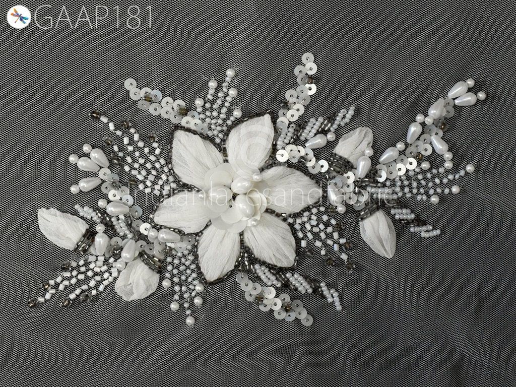 Beaded Floral Applique Patch: Handmade Embroidered Indian Sewing Craft