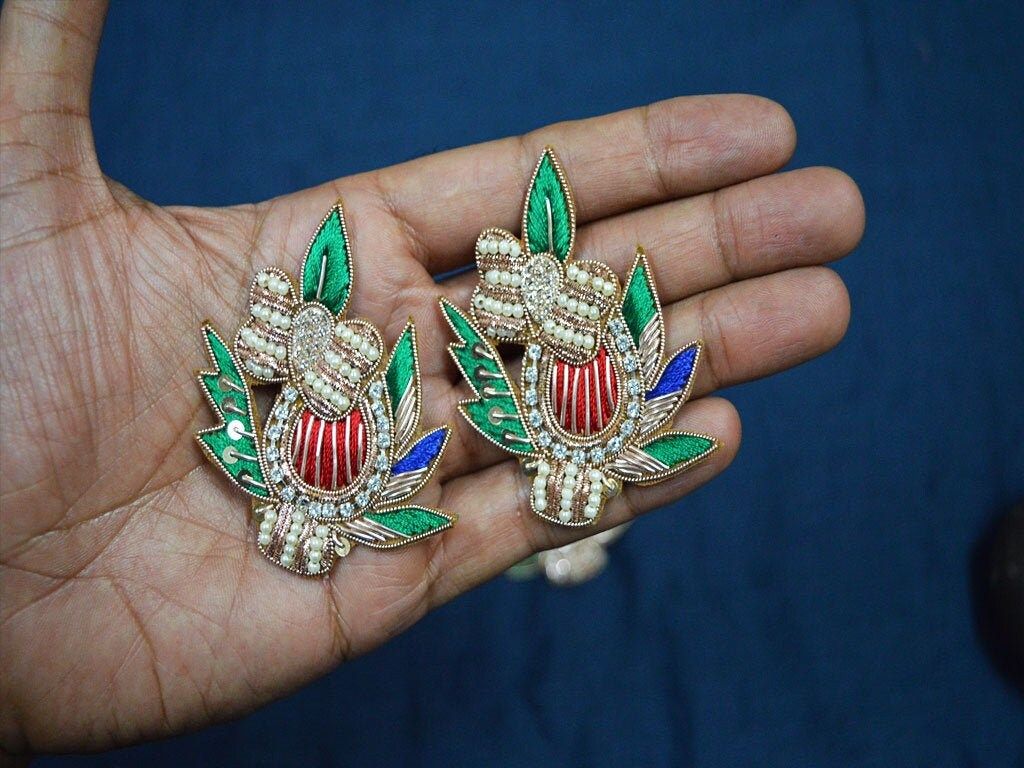 4 Pair Embroidery Hand Crafted Appliques Crafting Decorative Patches Beaded Embroidery Applique Denim Patch Sew on Patch Floral Patches, Christmas applique, Decorative Applique, Golden Appliques, Headband Applique, applique design, Handcrafted Appliques, Scrap-booking Appliques