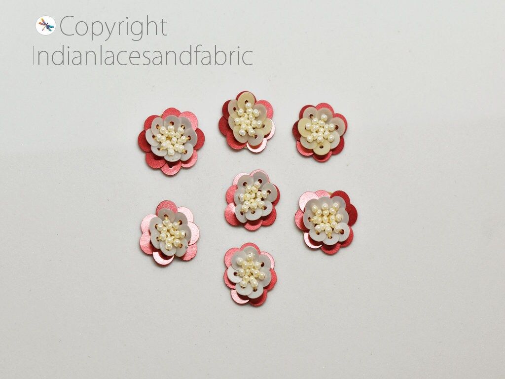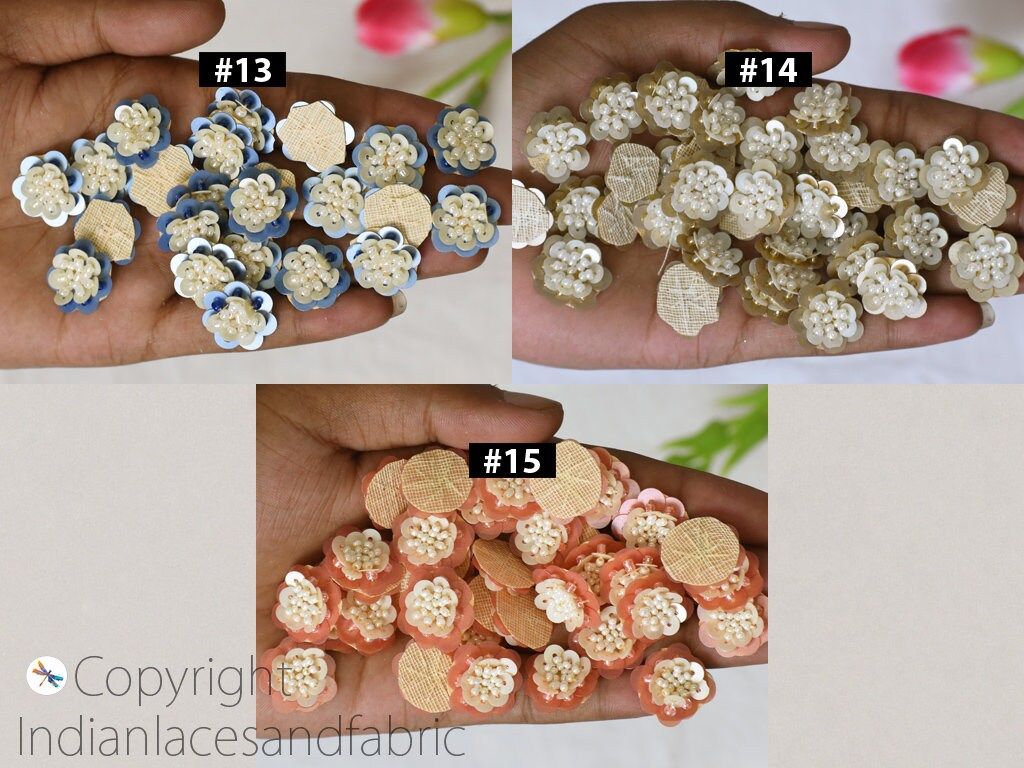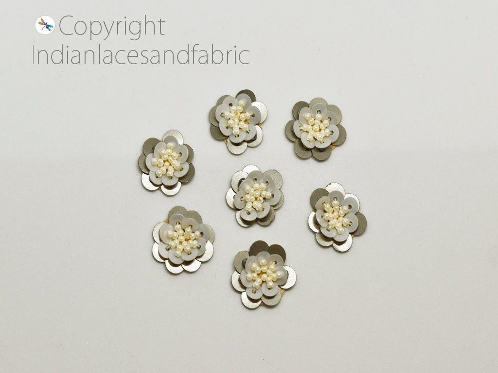 75 Beaded Flower Shaped Rhinestone Applique Indian Embroidery Patches Bridal Headband Crafting Sewing Embellishments Costumes Dress Patch, Handcrafted Applique, Sequins Patches, Wholesale Applique And Patches, Indian Applique, Christmas Applique, Appliques For Decoration, Handmade Appliques