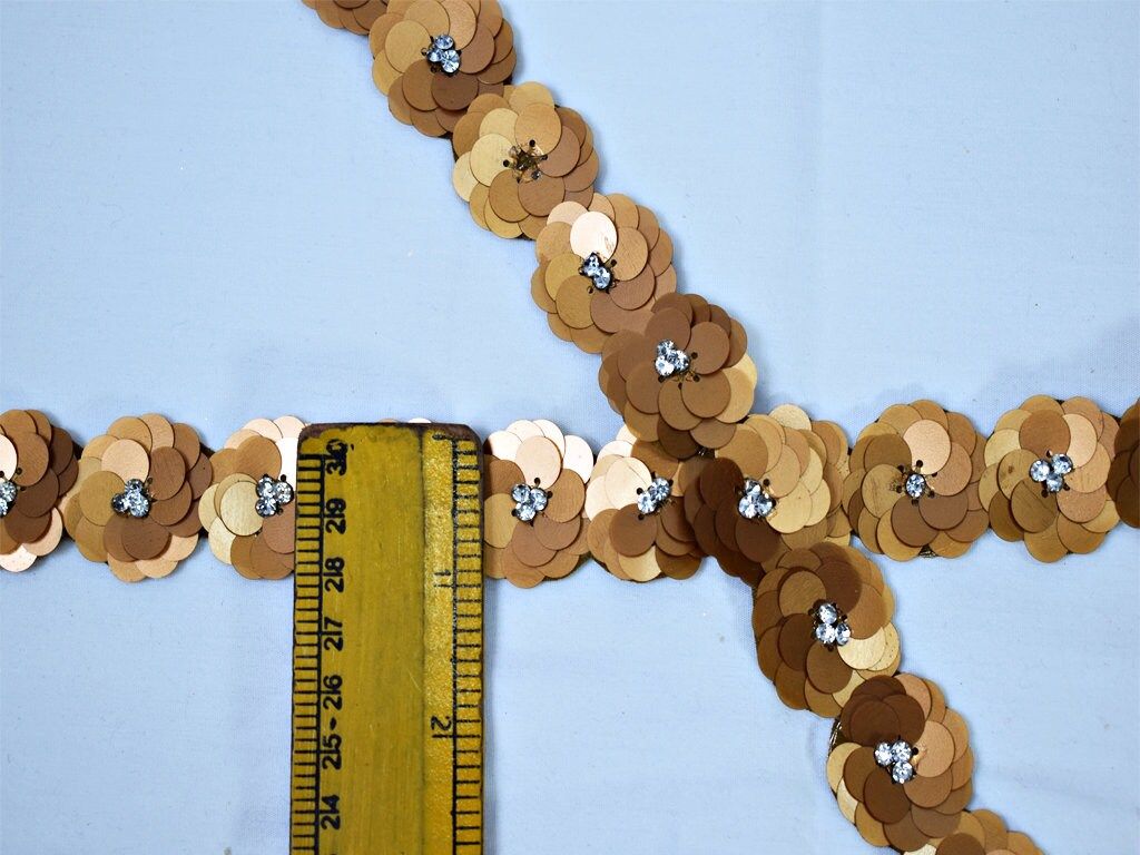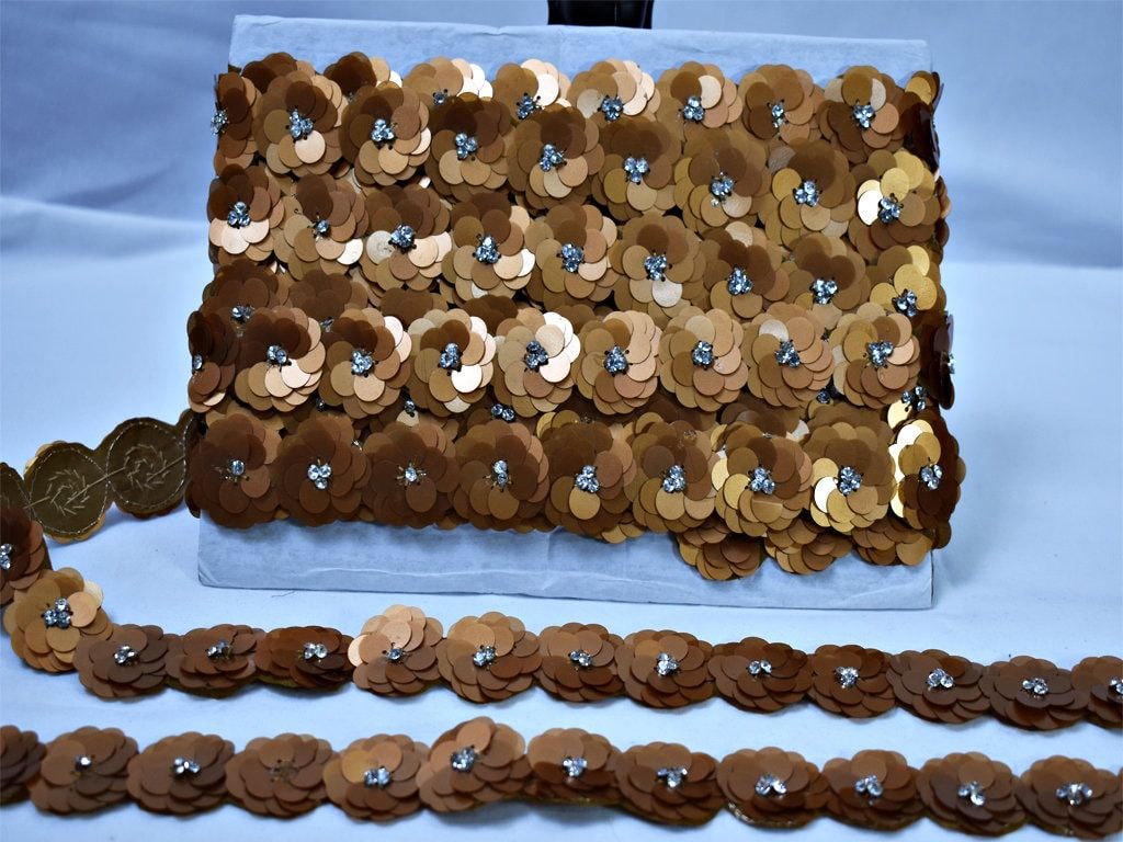 Brown Beaded Sequin Trim: Handmade Indian Sari Border, 3 Yards