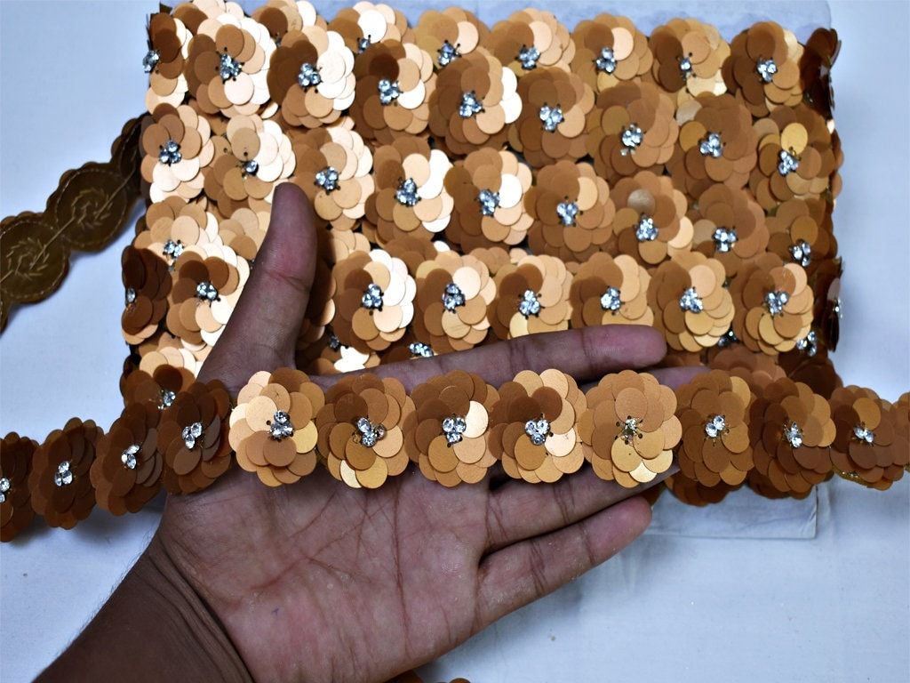 Brown Indian Beaded Trim by 3 Yard Sequins Handmade Wedding Dress Tapes Bridal Belt Sashes Decorative DIY Crafting Sari Border Embellishments