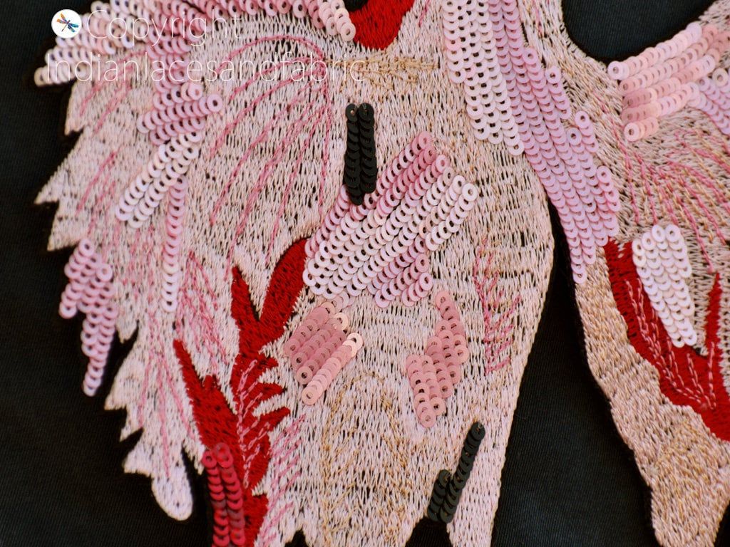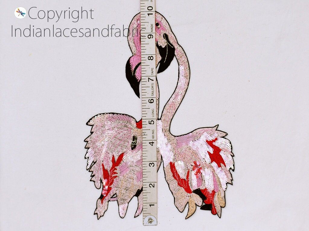 2 Pieces Flamingo Birds Patch 10 Inches for Denim Jackets are extremely beautiful applique (sew on applique or you can paste it with fabric) in Embroidery which gives the exclusive look. Each of them is decorated, beaded with Thread work to make it a perfect piece for embellishing a wedding dress, Wedding Skirt or a sari.