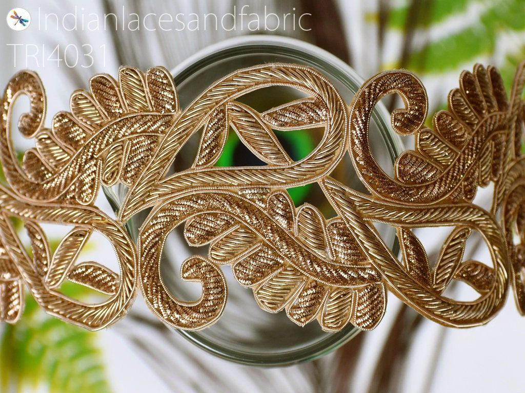 Exclusive Handmade Zardozi Trim By Yard | Beaded Indian Handcraft Wedding Sari Border DIY Craft Ribbon Saree Embroidered Zari Trim Costumes Home Decor Wedding Dress Ottoman decoration trim, Indian Saree Trim, Cushion Cover lace, Bag Embellishments border.