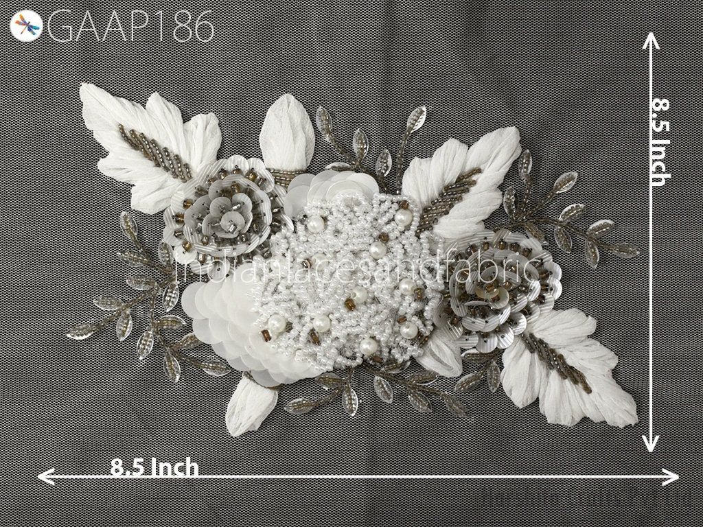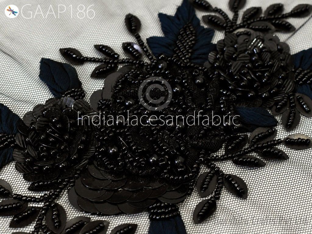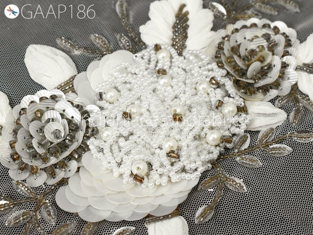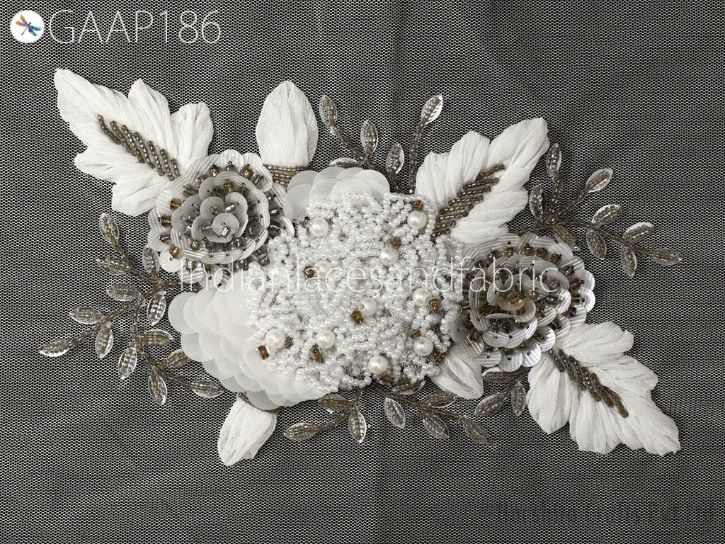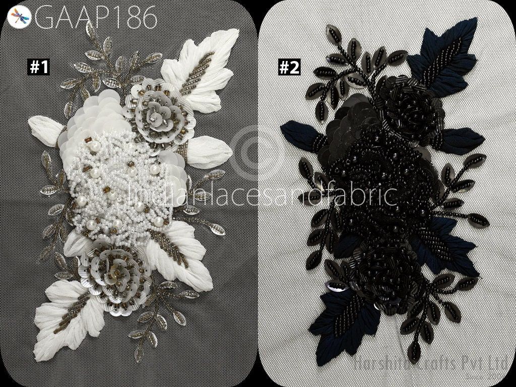 1 Piece Floral Beaded Applique | Handmade White Motif Patches Embroidered Women Black Dress Sewing Indian Patch Crafting Supply Home Decor, Indian Patches Appliques, Christmas applique, Applique for dress, Headband Applique, applique designs, Handcrafted Appliques, Scrap booking Appliques