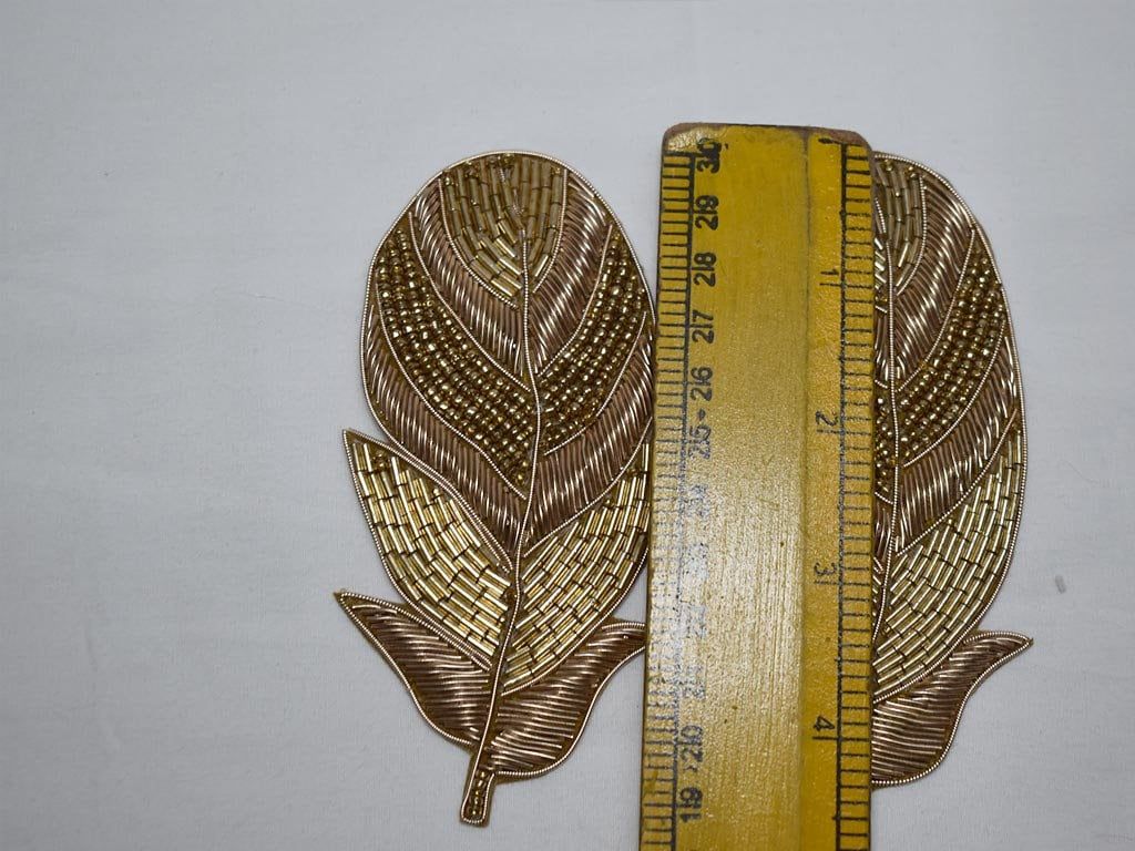 Gold Beaded Feather Appliques: Indian Embroidered Patches (4 Piece)